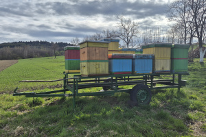 Mam do sprzedania platformę przyczepę do przewozu uli 3 x 5 uli wielkopolskich (w trzech rzędach po 5 uli - środkowa szuflada wysuwana) resorowana (oś skrętna). Po przetrasportowaniu uli na miejsce docelowe platforma pełni funkcję stojaka.