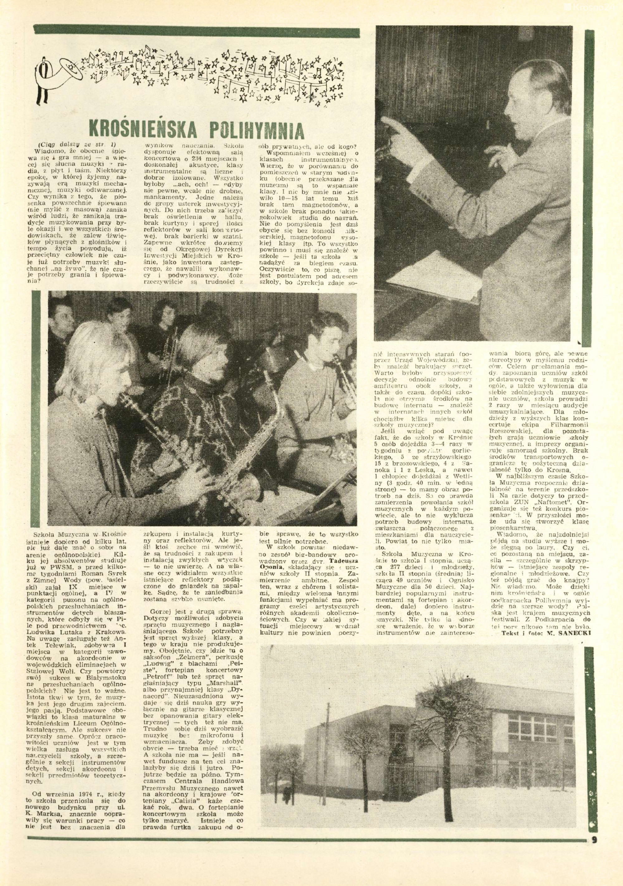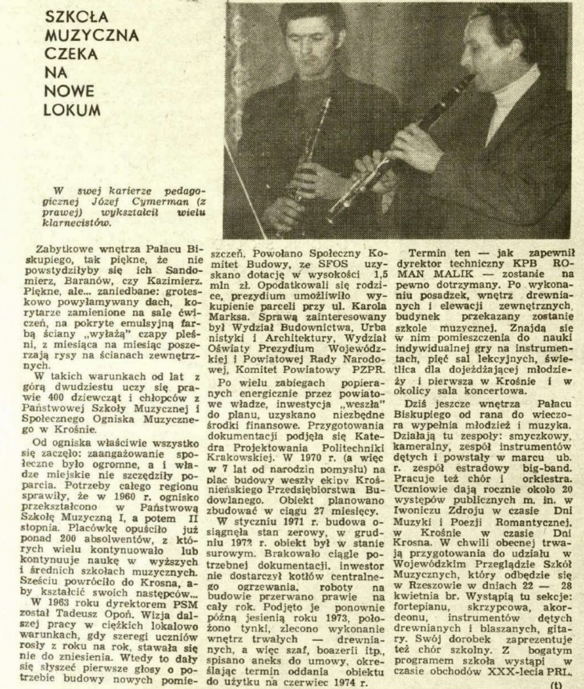 Szkoła Muzyczna w Krośnie przeniosła się do budynku przy ul. Paderewskiego w 1974 roku (wówczas ul. Karola Marksa).