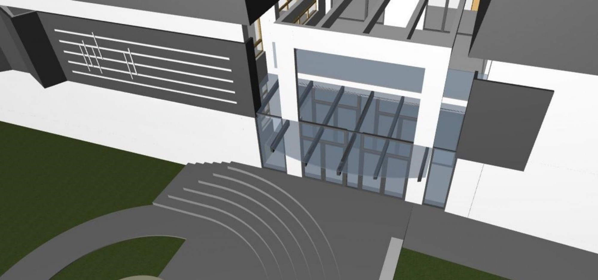 Zmieni się także wygląd szkoły z zewnątrz od ul. Paderewskiego. Obecna wnęka między skrzydłami budynku zostanie zabudowana na poziomie parteru i stworzy przed salą przestronny hol. Widać to na tym zdjęciu: