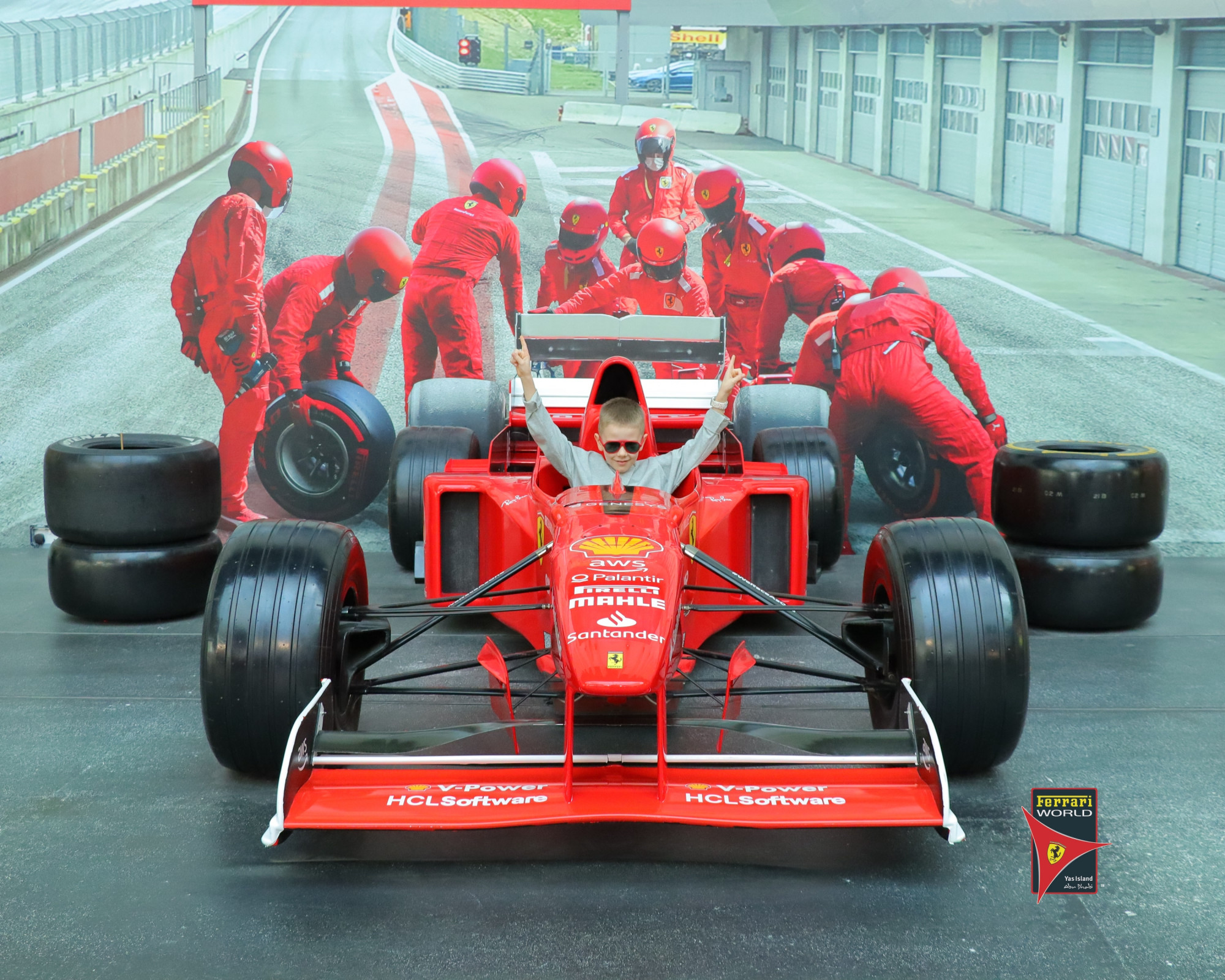 Marzeniem chłopca jest jazda profesjonalnym bolidem podczas najbardziej prestiżowych międzynarodowych wyścigów samochodowych - Formuły 1. Na zdjęciu w parku rozrywki Ferrari World w Abu Dhabi