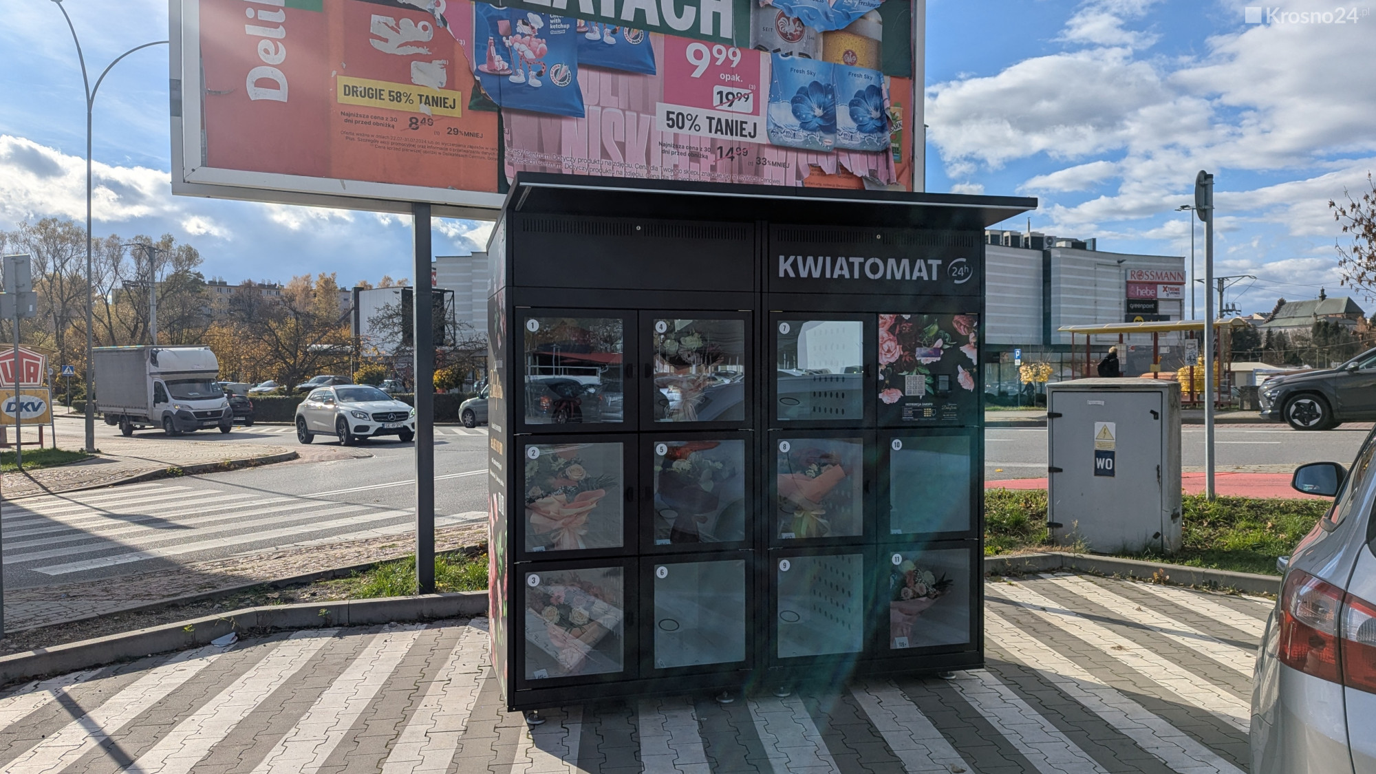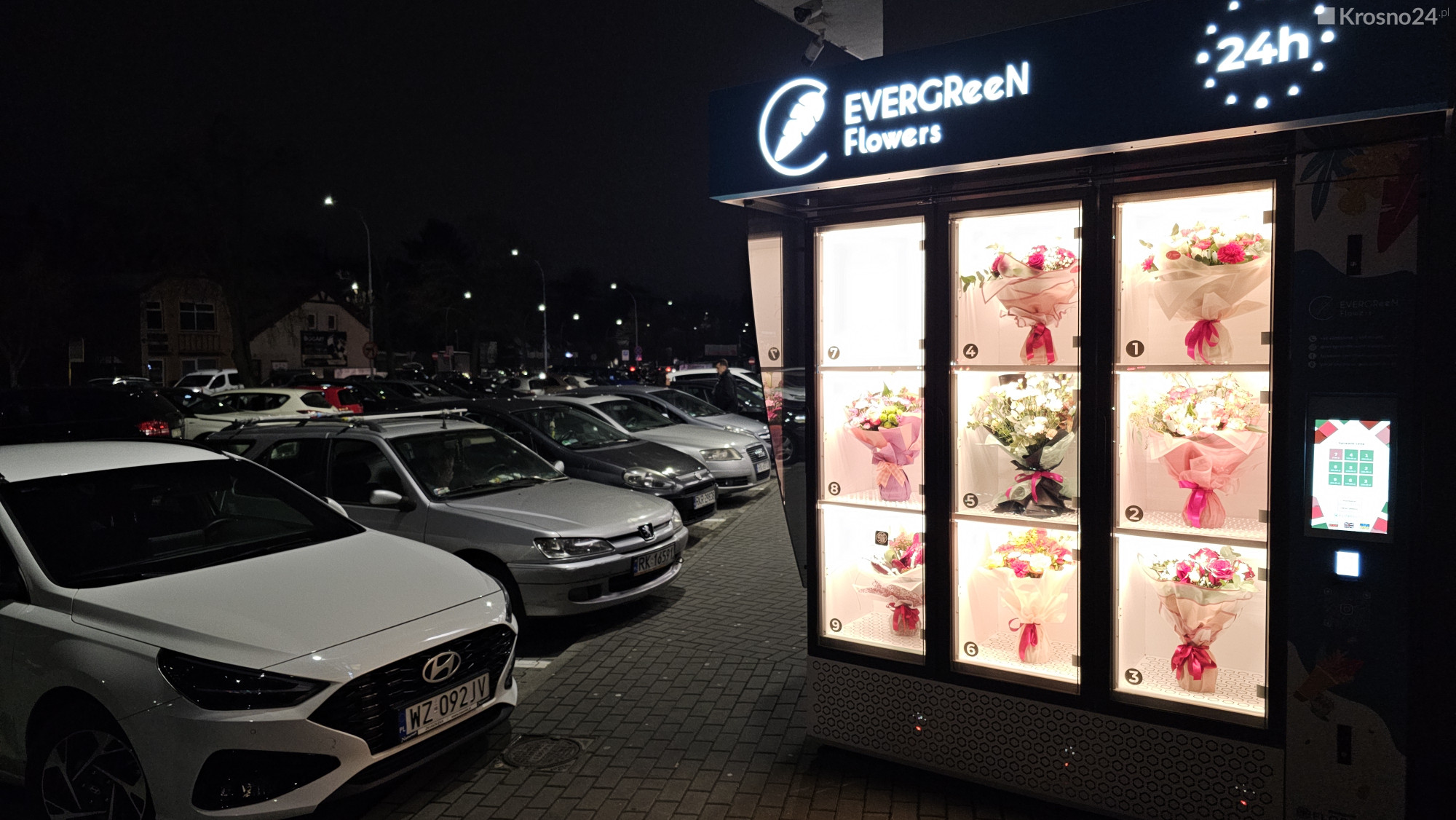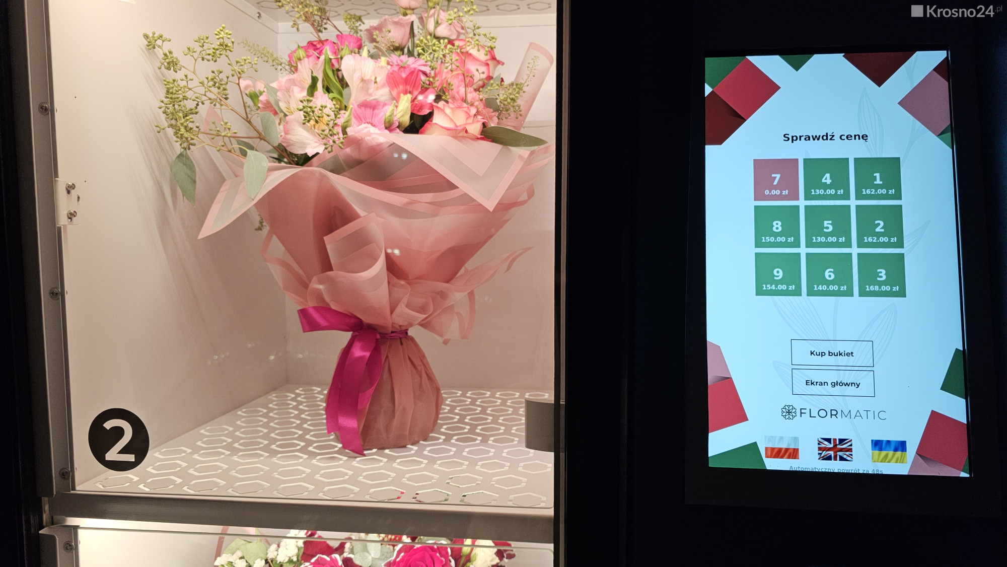 Pierwszy kwiatomat w Krośnie pojawił się w 2022 roku na Guzikówce. Pisaliśmy o tym tutaj. Pani Wioletta po ponad 3 latach jest zadowolona ze swojej innowacji i przyznaje, że maszyna wciąż cieszy się zainteresowaniem. W międzyczasie w mieście powstały także kwiatomaty innych kwiaciarni, znajdziemy je np. przy galeriach Vivo!, Krosno i Portius, a także przy markecie Kaufland.