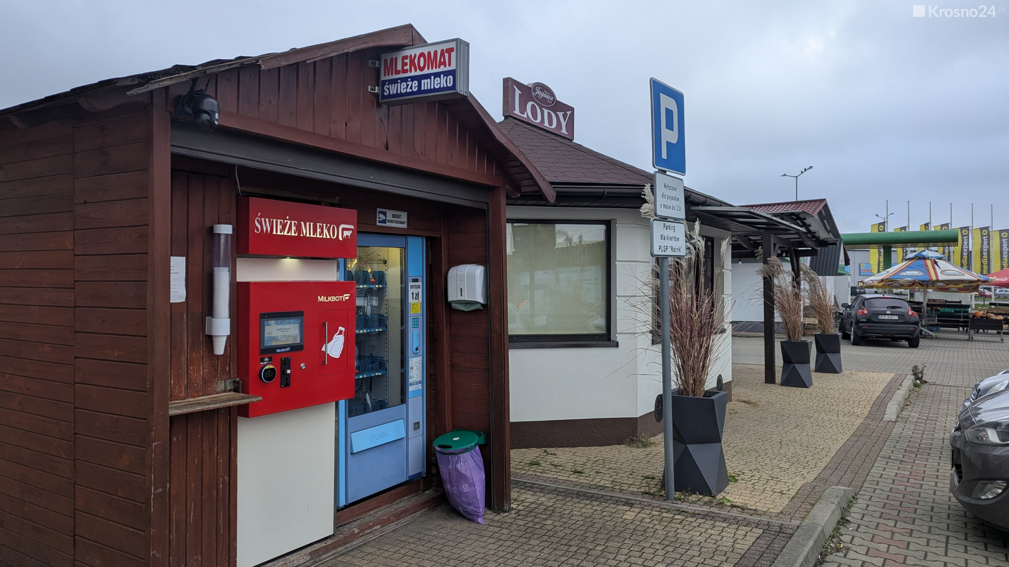 Obecnie mlekomat w Krośnie jest tylko przy ul. Składowej/Podkarpackiej obok cukierni Jagusia oraz w Suchodole przy kawiarni Zaczątek i piekarni Kopacz.