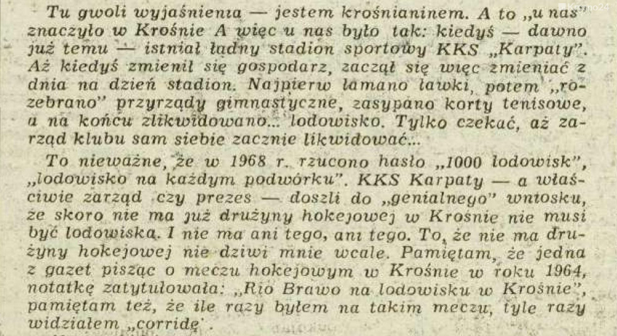 Chociaż od tamtych surowych warunków wiele się zmieniło, wciąż sporo brakuje, aby hokej w Krośnie nabrał profesjonalnego charakteru.