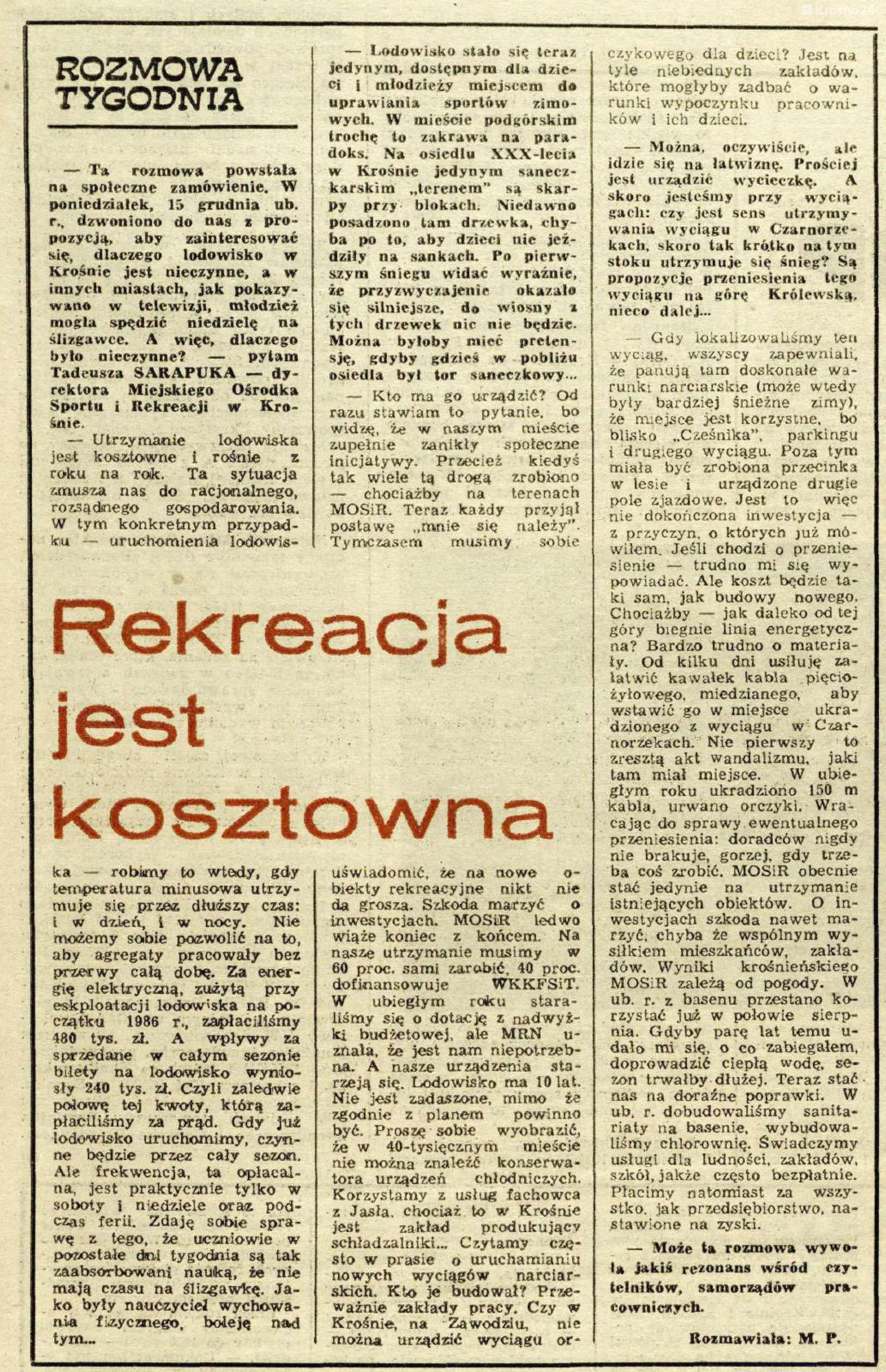 - Przy pierwszych warstwach lodu były one doskonale widoczne. Teraz, po dwóch miesiącach tafla jest tak gruba, że słabo je widać, zwłaszcza na środku boiska. Konieczne byłoby stosowanie specjalnej technologii utrzymania lodu – przyznają. Dodatkowo lodowisko nie posiada także standardowych wymiarów boiska hokejowego.