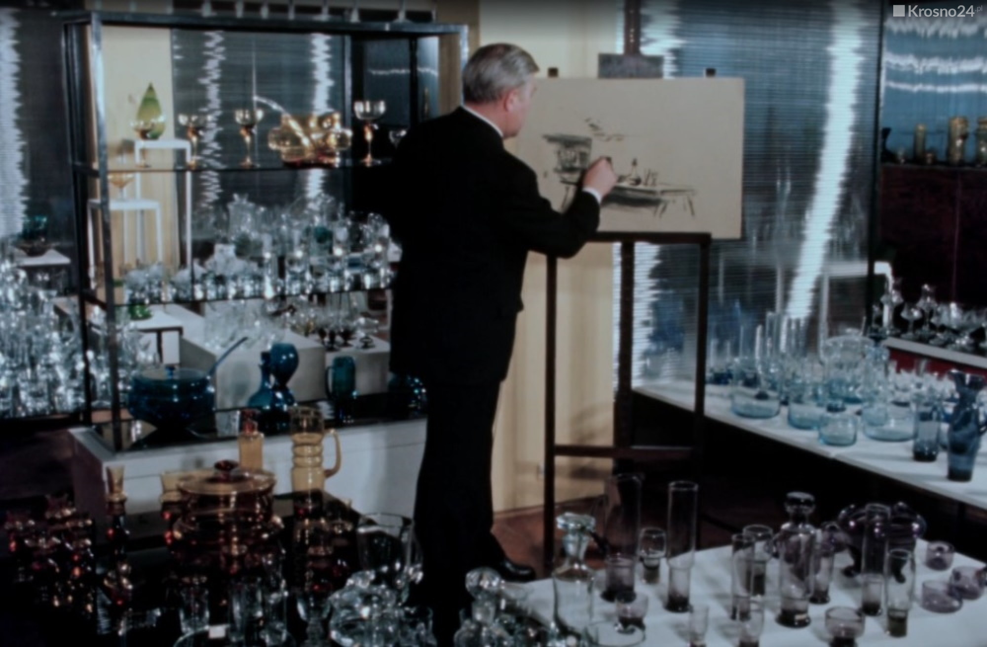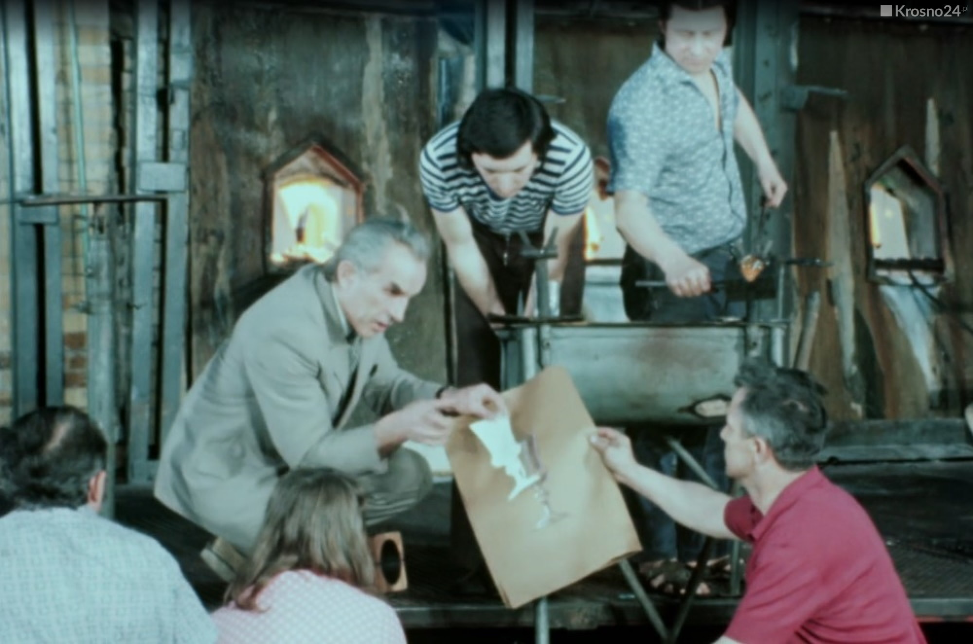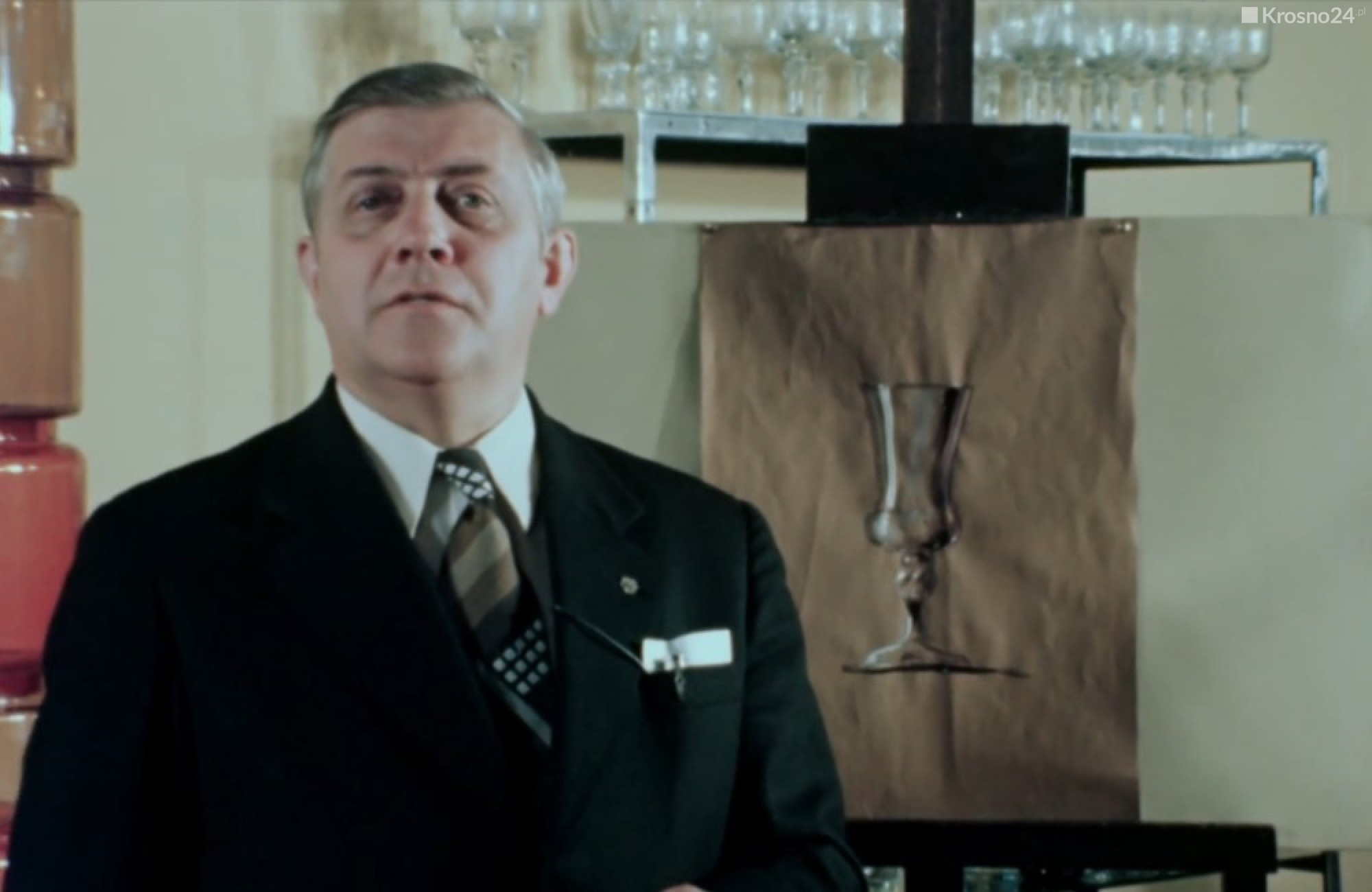 Prof. Wiktor Zin odwiedza hutę szkła w Krośnie i jego ośrodek wzornictwa, gdzie przedstawia projekt szklanego pucharu swojego autorstwa głównemu projektantowi. Pan Bronisław akceptuje ten szkic i po przygotowaniu dokumentacji technicznej przekazuje do produkcji. Następnie możemy zobaczyć, jak powstaje drewniana forma, która posłużyła do tego, aby płynna, szklana masa przybrała odpowiedni kształt. Potem rozpoczyna się formowanie pucharka.