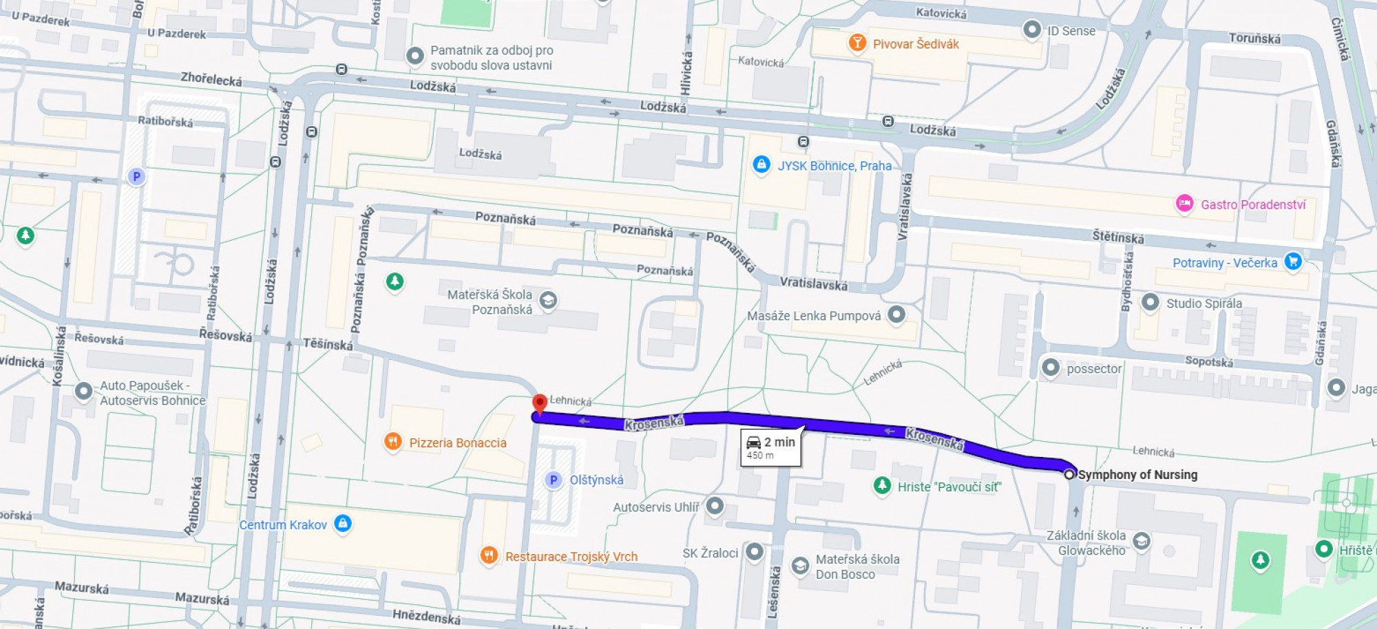 Praska Krosenská ma ok. 500 metrów. Jest częścią dzielnicy Bohnice  w północnej części Pragi (Praga 8). To także osiedle z wielkiej płyty, co widać przy "naszej" ulicy, tłumnie zapełnionej samochodami mieszkańców wysokich bloków.