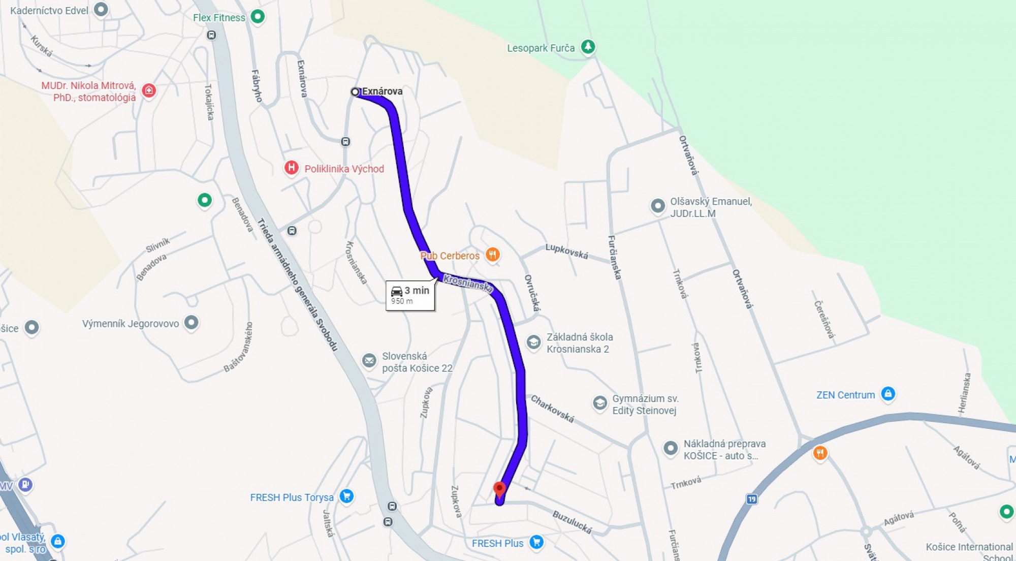 Znajduje się ona we wschodniej części miasta, w dzielnicy Dargovských hrdinov położonej na wzgórzu, potocznie nazywanej „Furča”.