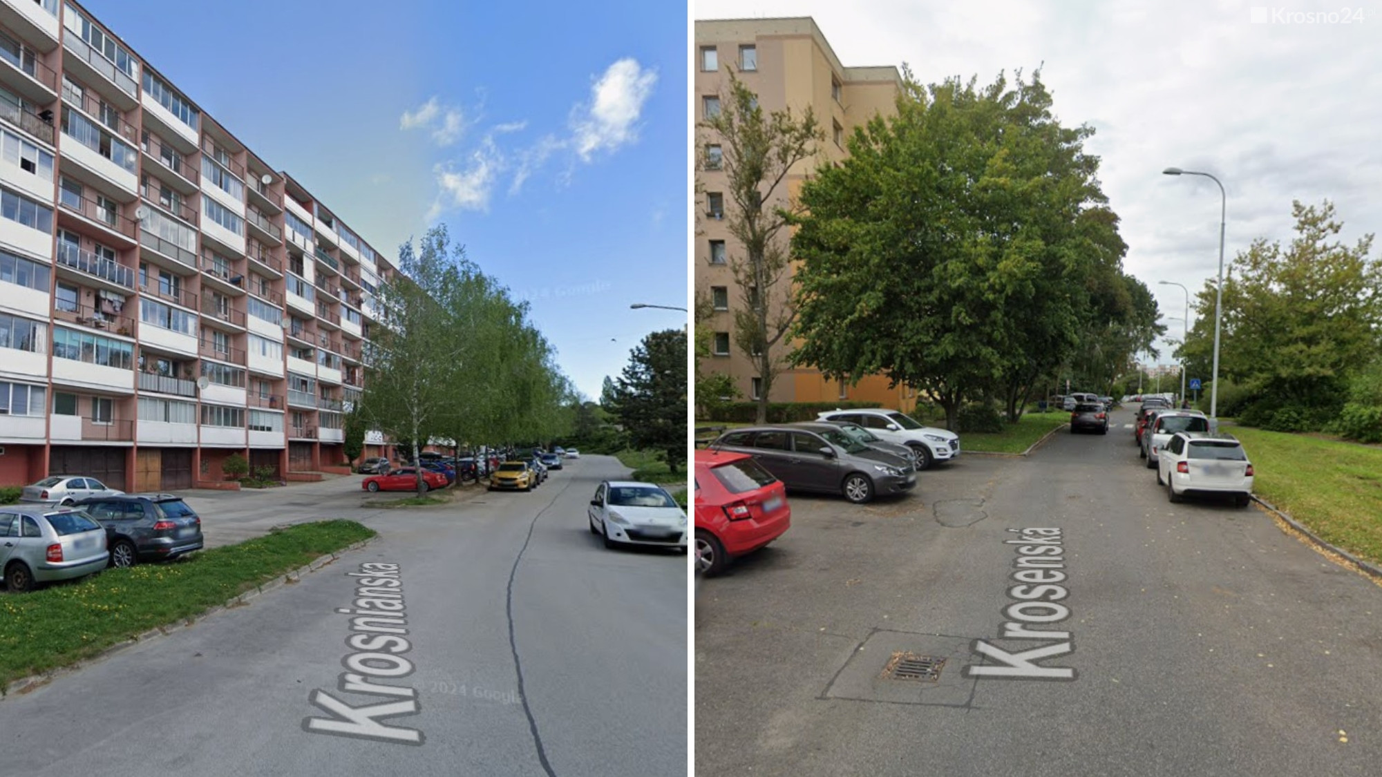 Po lewej ul. Krosnianska w słowackich Koszycach, po prawej ul. Krosenska w czeskiej Pradze