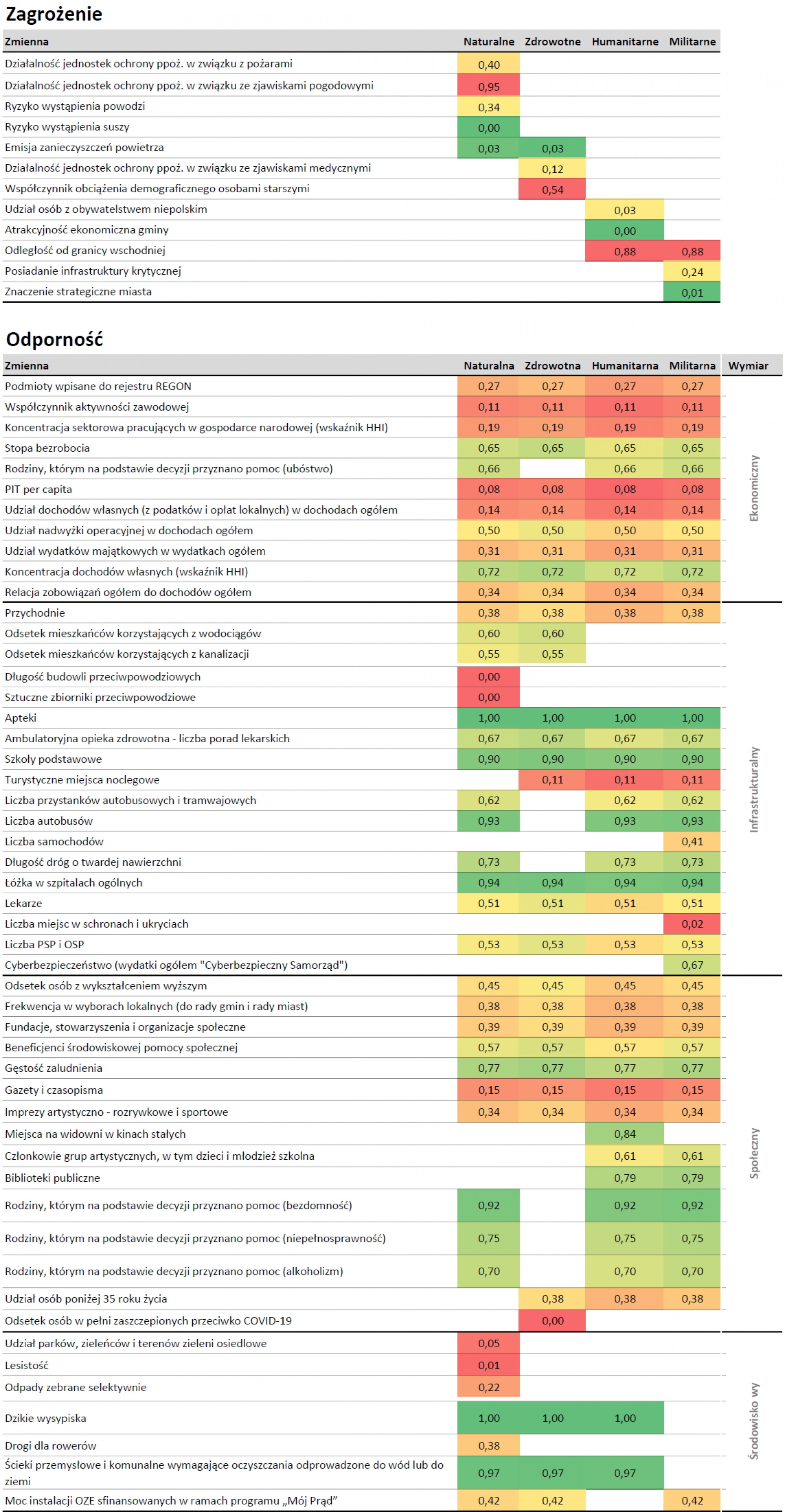Na wskaźnik odporności (zdolności do reakcji na kryzys i odbudowy) składa się kilkadziesiąt czynników przypisanych do czterech kluczowych wymiarów: