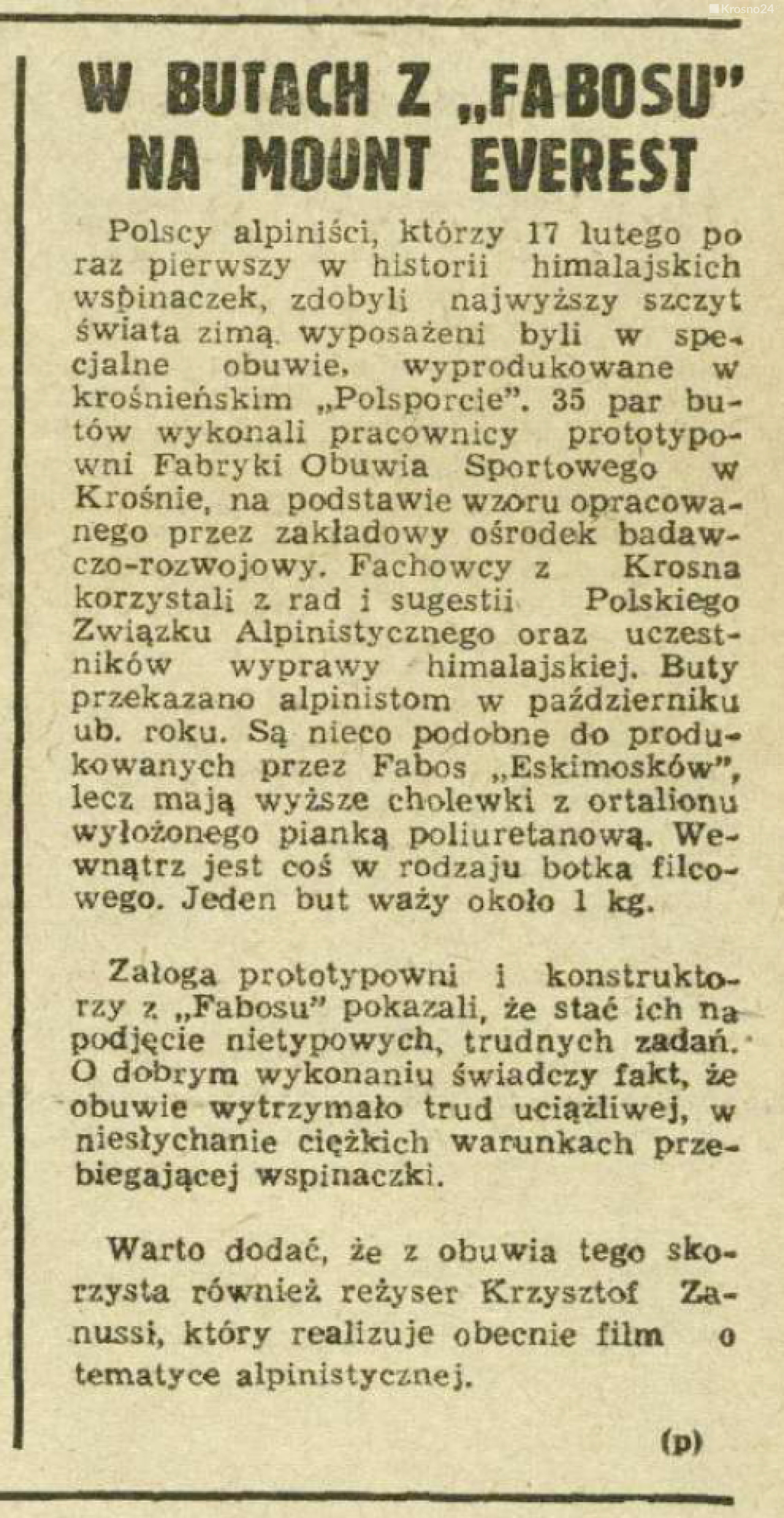 "Warto dodać, że z obuwia tego skorzystał również reżyser Krzysztof Zanussi, który realizuje obecnie film o tematyce alpinistycznej" - kontynuowano w tygodniku.