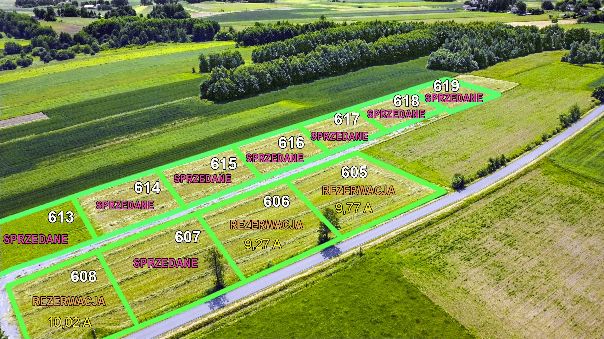 Działka nr 605: pow. 977m2 → 97 700,00 zł (10 000 zł/a) - REZERWACJA