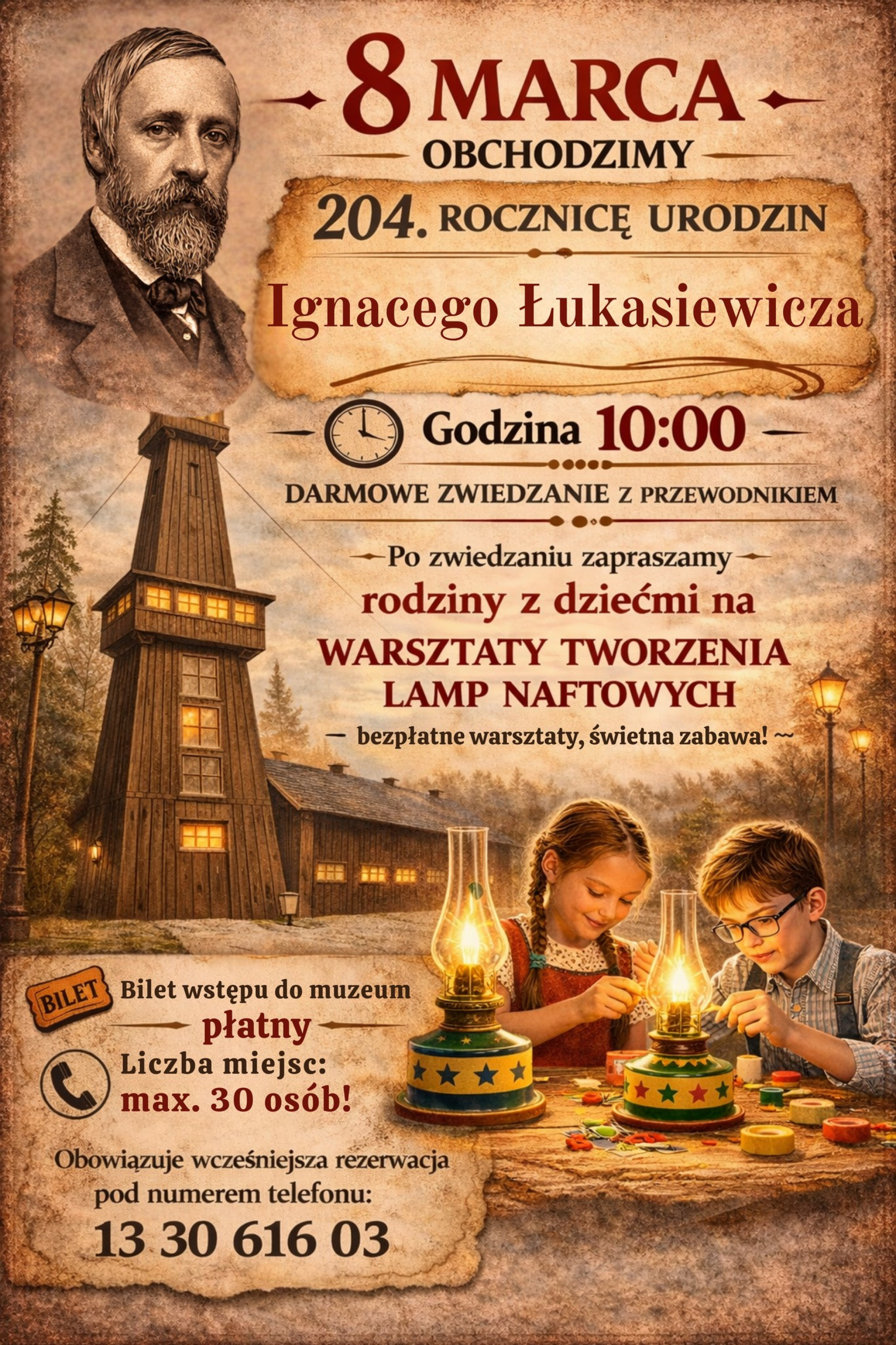 Po zwiedzaniu organizatorzy zaproszą rodziny z dziećmi do "Naftusi”, gdzie odbędą się warsztaty tworzenia lamp naftowych - zabawa wciągająca zarówno małych, jak i dużych turystów.