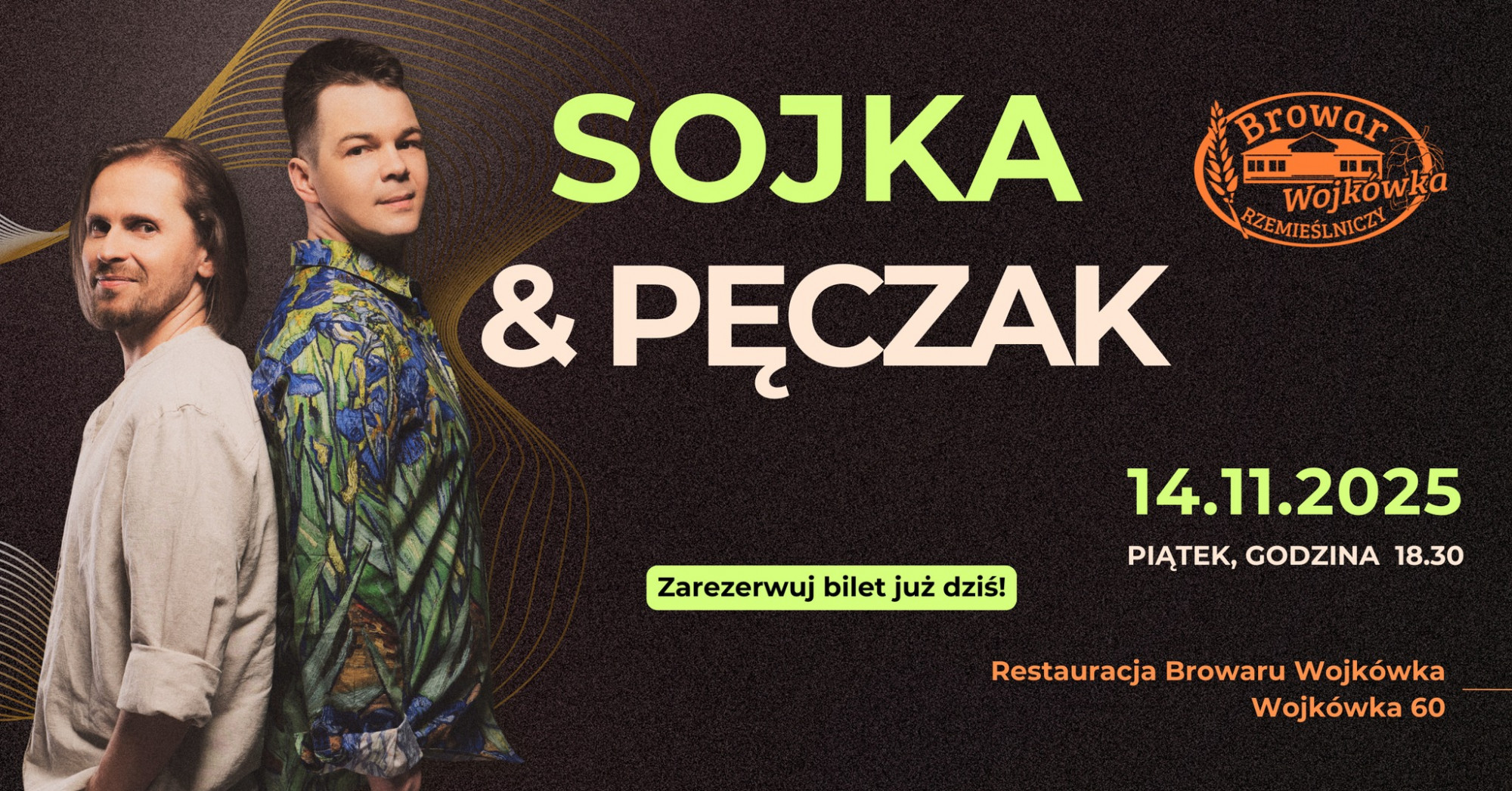 Restauracja Browaru Rzemieślniczego Wojkówka zaprasza na koncert akustyczny duetu Antek Sojka & Janek Pęczak, który odbędzie się 14 listopada (piątek) o godz. 18:30. To będzie spotkanie dwóch muzycznych światów, które łączy pasja i autentyczność.
