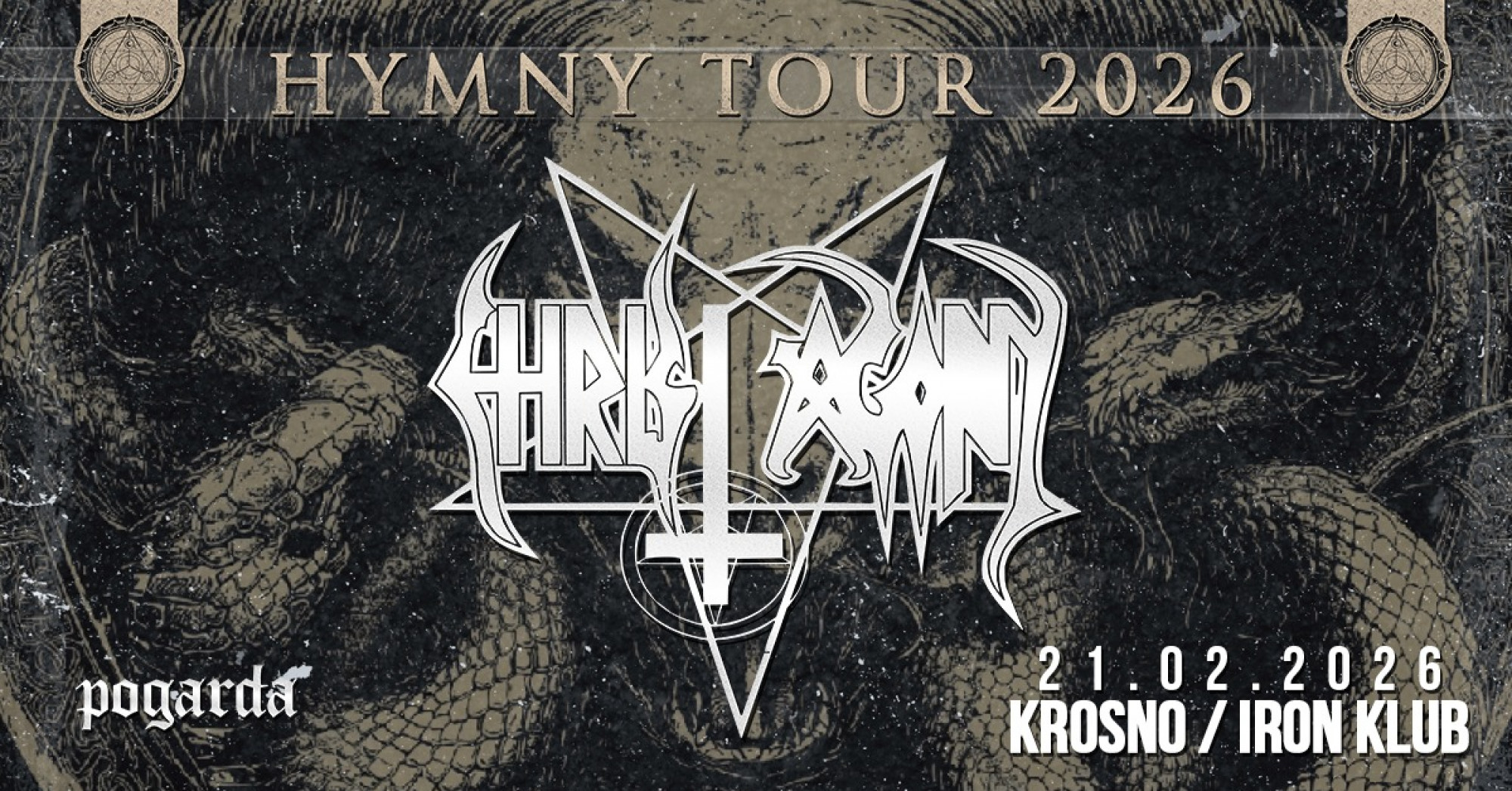 Legenda polskiego black metalu powraca. Deformeathing Production i Rock Klub Iron zapraszają na koncert zespołów Christ Agony i Pogarda, który odbędzie się 21 lutego (sobota) o godz. 19:00. Zespół Christ Agony promuje album "Anthems" wydany we wrześniu 2025 po dziewięciu długich latach ciszy.