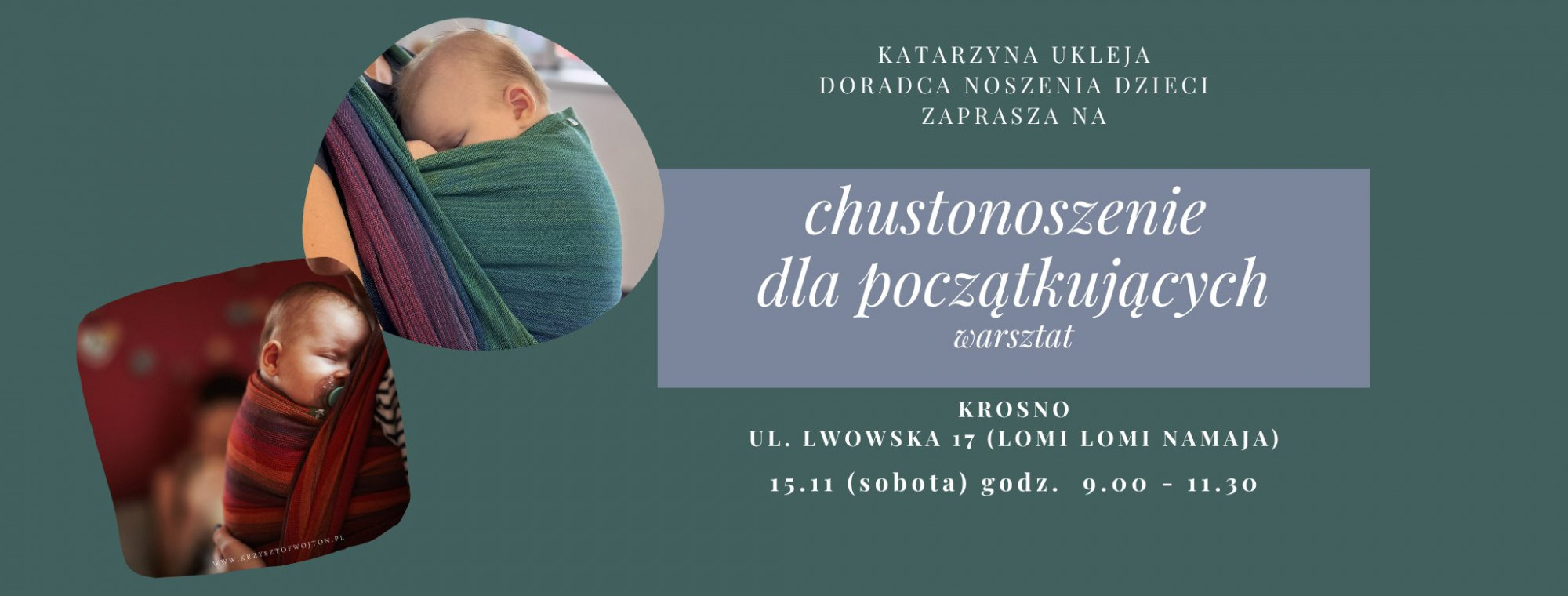 Katarzyna Ukleja - doradczyni noszenia dzieci zaprasza rodziców spodziewających się dziecka oraz rodziców małych dzieci (do 6 miesiąca życia) na naukę wiązania chusty. Warsztaty odbędą się 15 listopada (sobota) o godz. 9.00 w Pracowni Lomi Lomi Namaja (ul. Lwowska 17).