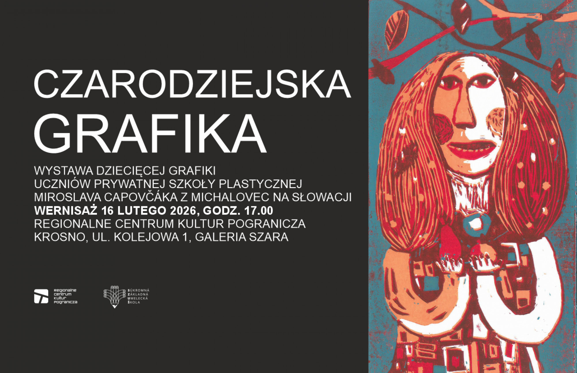 Regionalne Centrum Kultur Pogranicza w Krośnie zaprasza na wystawę dziecięcej grafiki uczniów Prywatnej Szkoły Plastycznej Miroslava Capovčáka z Michalovec na Słowacji. Wystawa „Czarodziejska grafika” odsłania świat dziecięcej wrażliwości zapisanej w linorycie, suchej igle czy kolografii. Wernisaż odbędzie się 16 lutego (poniedziałek) o godz. 17.00.