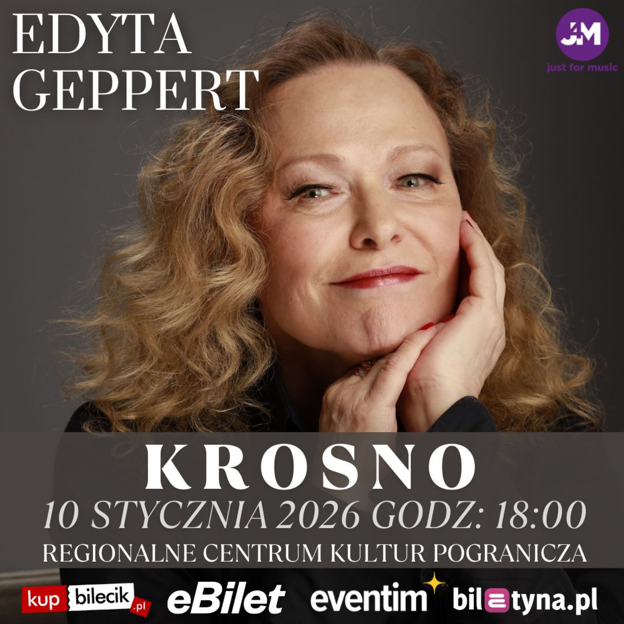 10 stycznia 2026 roku (sobota) w Regionalnym Centrum Kultur Pogranicza w Krośnie wystąpi Edyta Geppert wraz z zespołem Vasie. Recital, według scenariusza i w reżyserii Piotra Loretza, pozwoli publiczności usłyszeć najpiękniejsze polskie piosenki literackie.