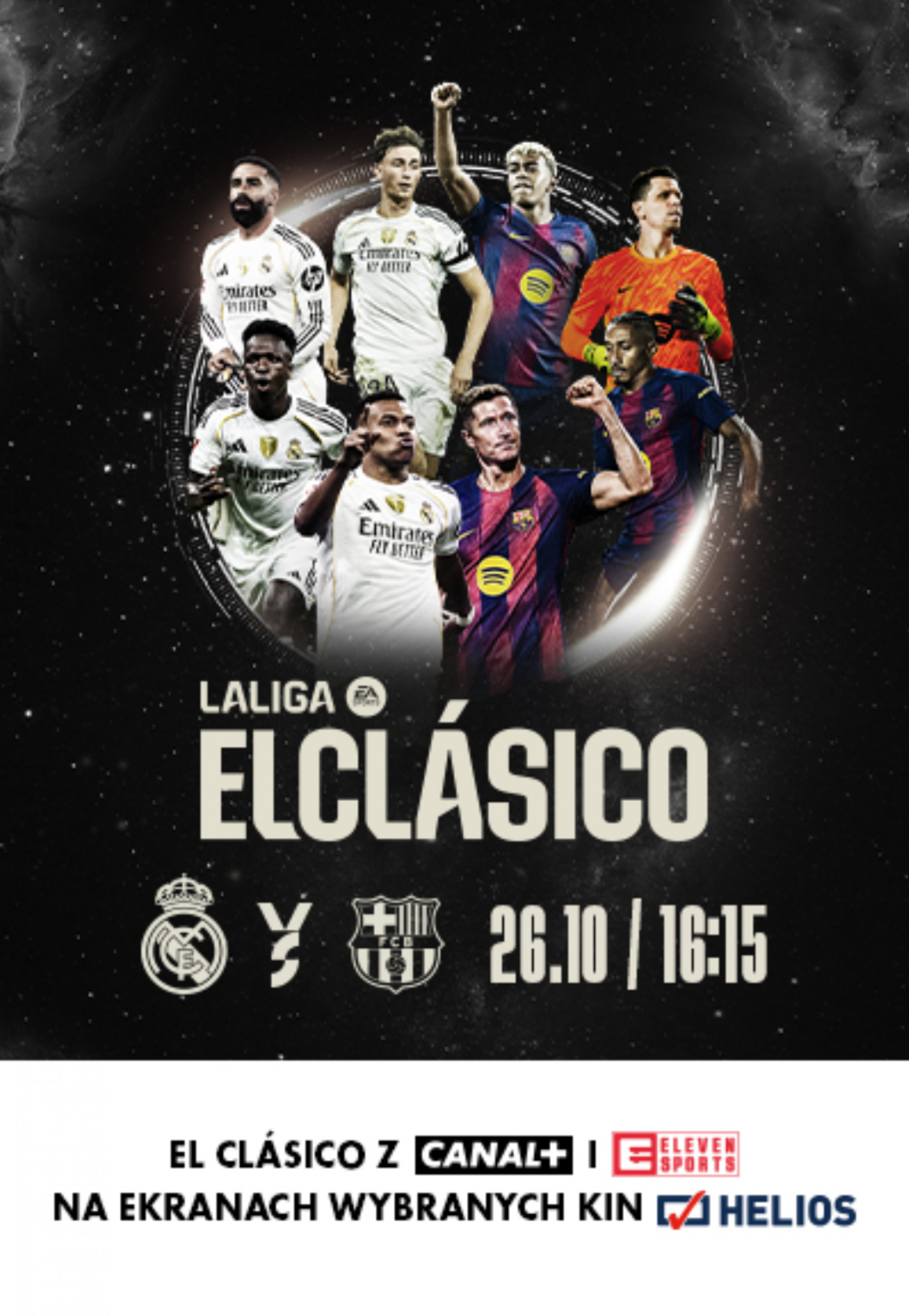 Najsłynniejszy piłkarski klasyk na świecie ponownie na ekranach kin Helios. Real Madryt - FC Barcelona już 26 października (niedziela) o godz. 16:00 w kinie Helios.