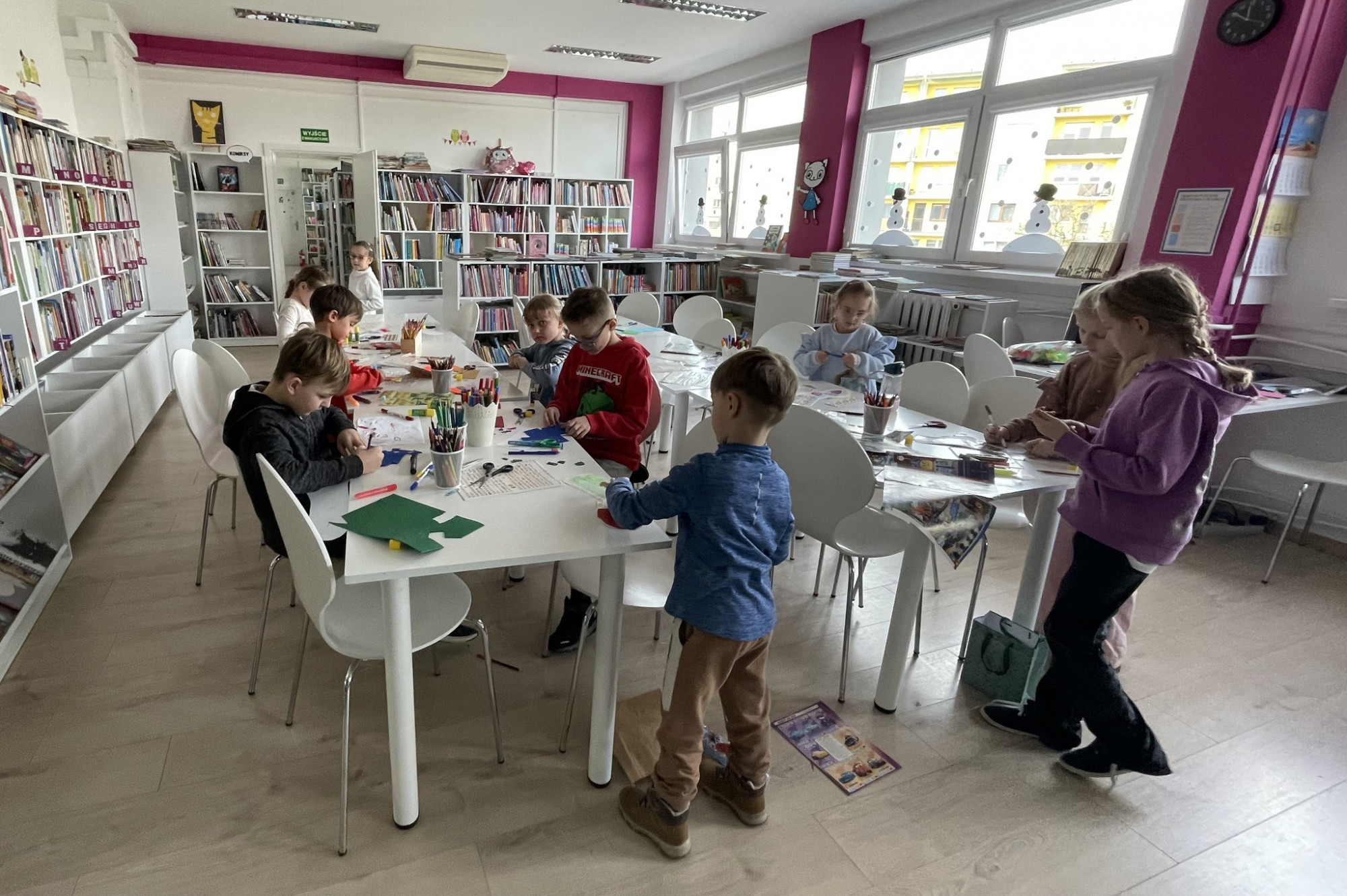 W programie: głośne czytanie fragmentów książek Agaty Romaniuk z serii „Kocia Szajka”, zajęcia plastyczne (prace o różnej tematyce, wykonywane różnymi technikami, m.in. warsztaty z diamond painting), układanie klocków Lego, zajęcia z wykorzystaniem interaktywnego robota, gry i zabawy stolikowe oraz grupowe, zabawy słowem - ćwiczenia językowe (rebusy, łamigłówki, wykreślanki).