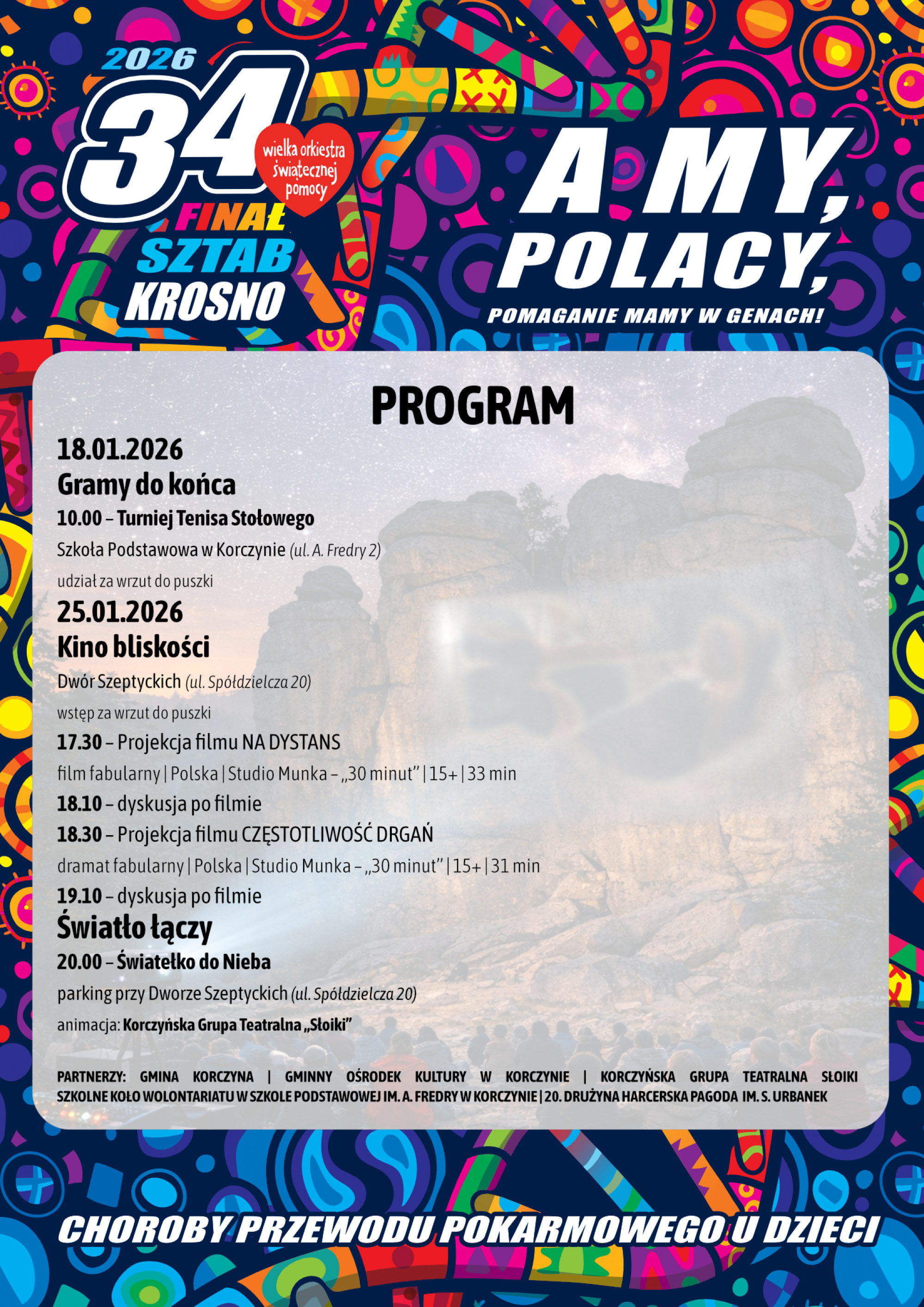 Symboliczne zakończenie finałowego dnia w Korczynie. Wspólne „Światełko do Nieba” będzie momentem refleksji, solidarności i wspólnoty. Animację wydarzenia przygotuje Korczyńska Grupa Teatralna „Słoiki”.