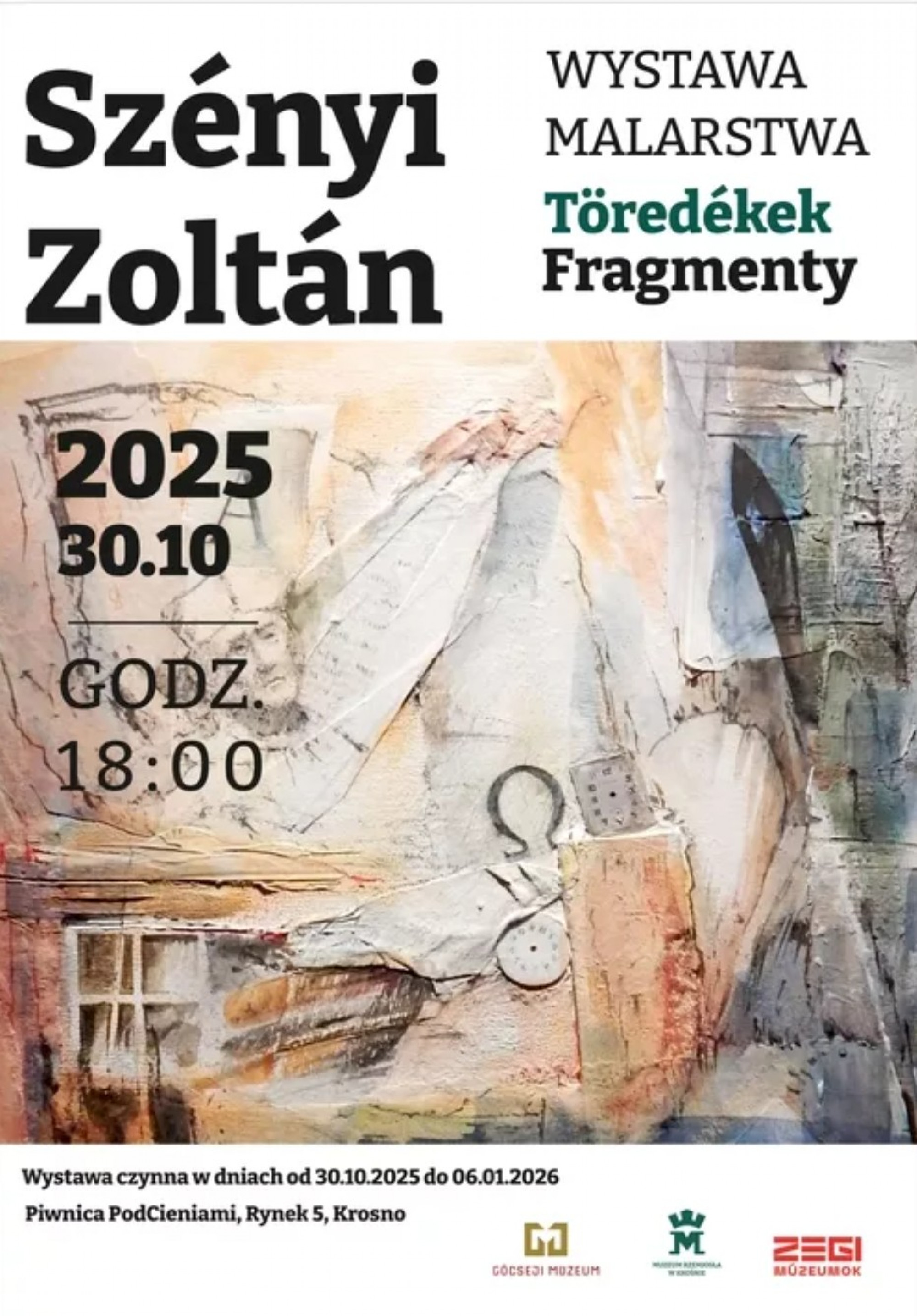 Muzeum Rzemiosła w Krośnie zaprasza na wystawę malarstwa autorstwa Zoltána Szényi. Wernisaż odbędzie się w 30 października (czwartek) o godz. 18.00 w Piwnicy PodCieniami (Rynek 5, wstęp wolny).