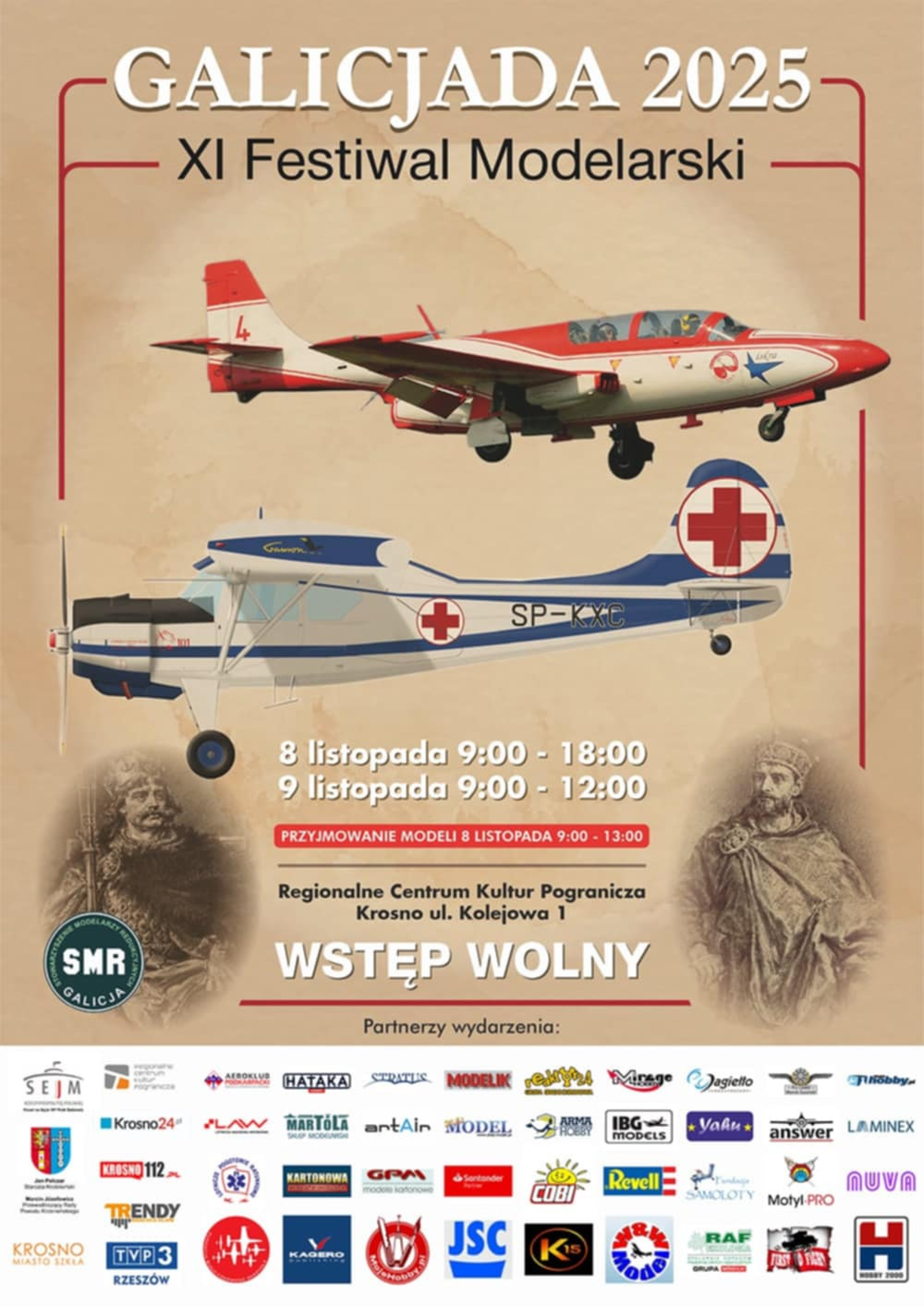 Stowarzyszenie Modelarzy Redukcyjnych "Galicja" zaprasza na festiwal modelarski Galicjada 2025 - XI edycję wystawy modelarskiej połączonej z konkursem. Impreza odbędzie się 8-9 listopada (sobota, niedziela) w Regionalnym Centrum Kultur Pogranicza w Krośnie.