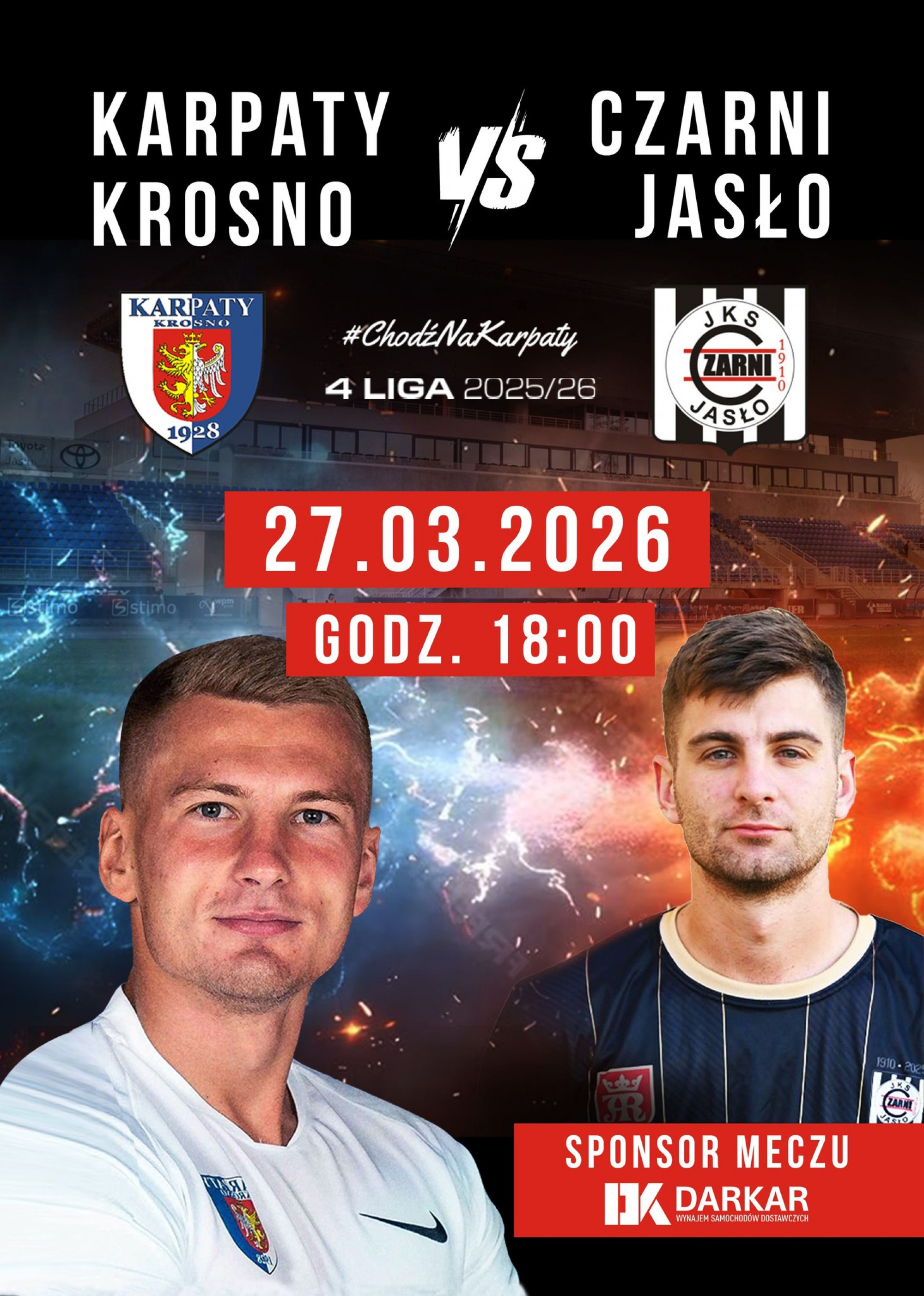 Czas na derby - piłkarskie emocje na najwyższym poziomie. W najbliższy piątek (27 marca) krośnieńscy kibice będą świadkami meczu piłkarzy Karpat Krosno i Czarnych Jasło. Początek spotkania o godz. 18:00.