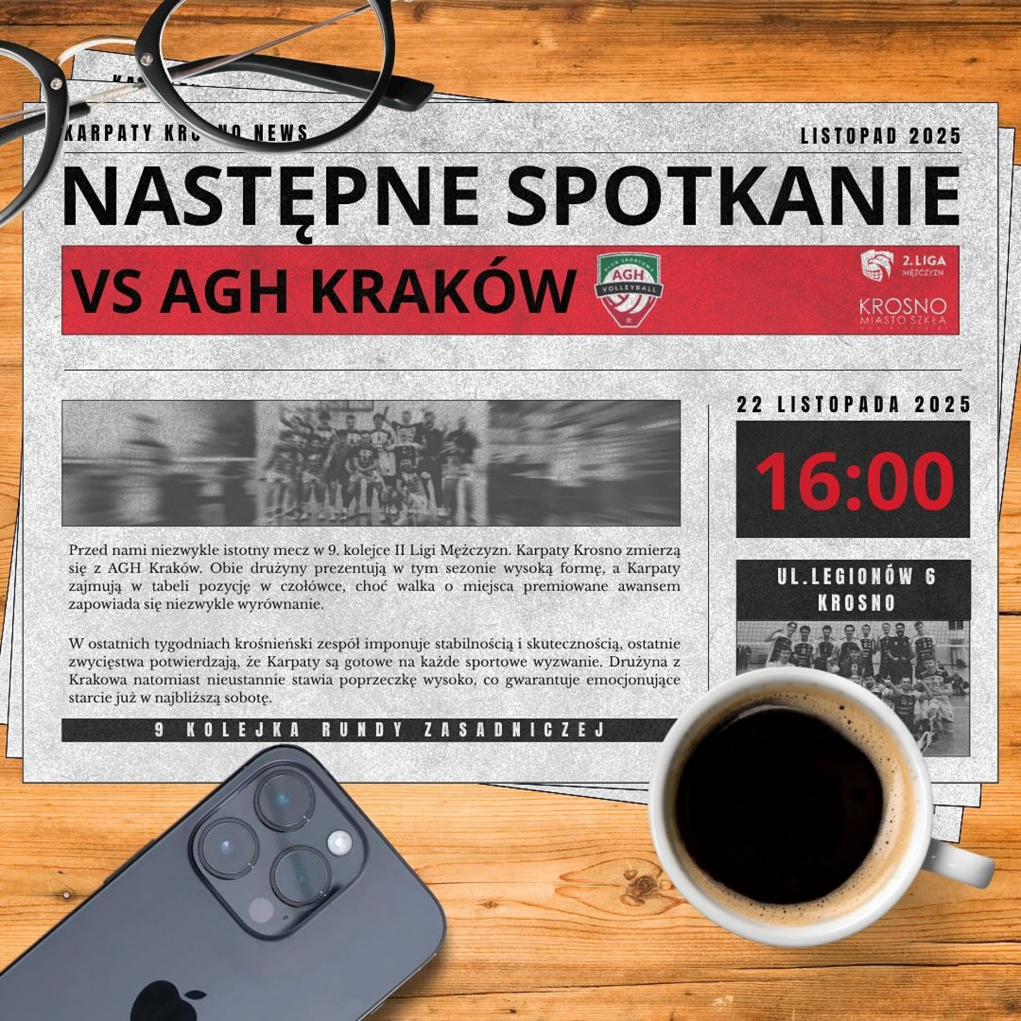 Przed nami kolejna dawka ligowych emocji w Krośnie. Krośnieńskie Stowarzyszenie Siatkówki Karpaty Krosno zaprasza na mecz drużyn Karpaty PANS Krosno - AGH Kraków. Odbędzie się on w najbliższą sobotę (22 listopada) o godzinie 16:00 w hali przy Legionów.
