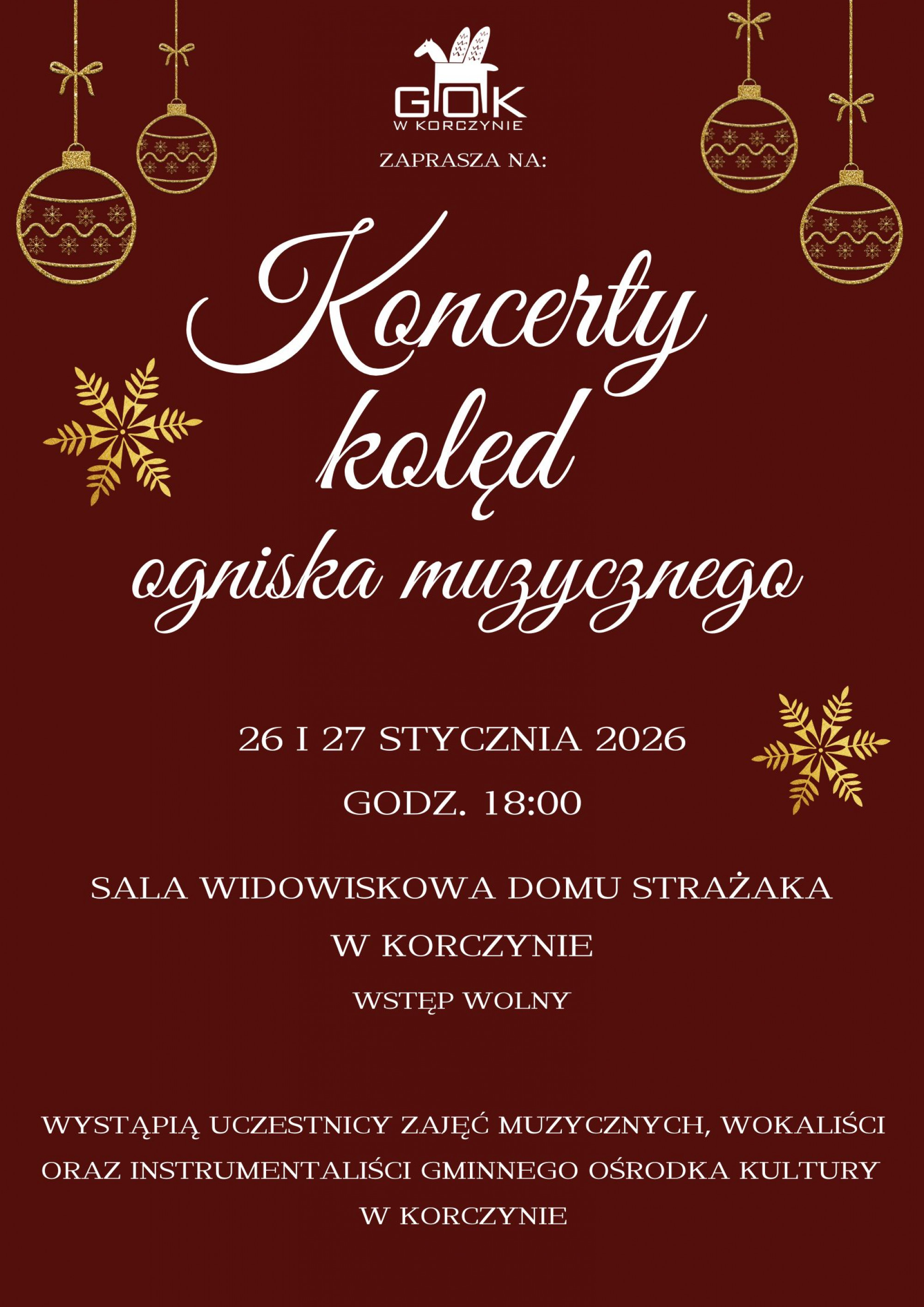 Tradycja wspólnego kolędowania ponownie zagości w Korczynie. Już 26 i 27 stycznia (poniedziałek - wtorek) w Sali Domu Strażaka odbędą się koncerty kolęd Ogniska Muzycznego, które co roku przyciągają liczne grono mieszkańców gminy i sympatyków muzyki.