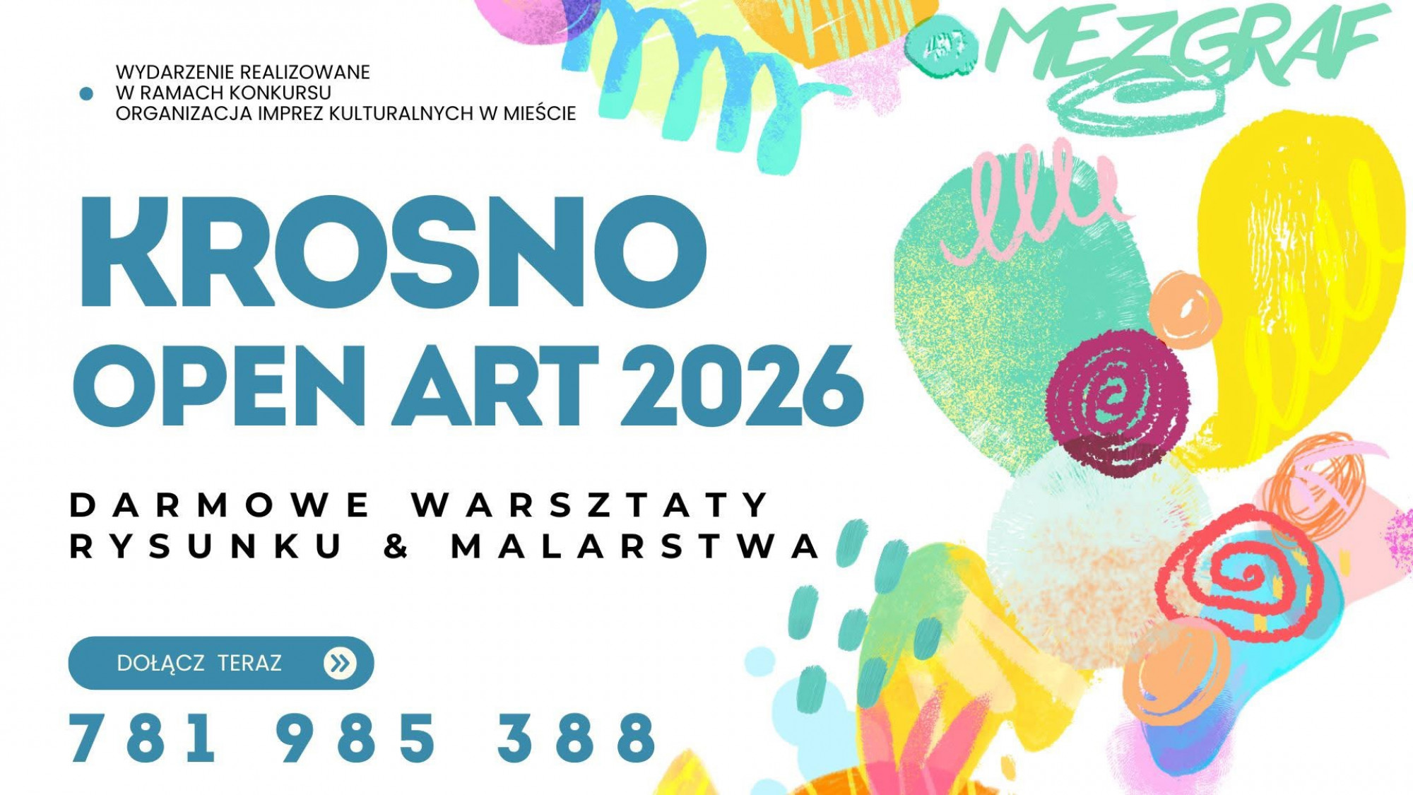 Pracownia Mezgraf zaprasza mieszkańców Krosna w wieku od 14 lat do udziału w bezpłatnym cyklu warsztatów rysunkowych i malarskich Krosno Open Art 2026. Zapisy już ruszyły, a same warsztaty wystartują 6 marca (piątek), godz. 17.00.