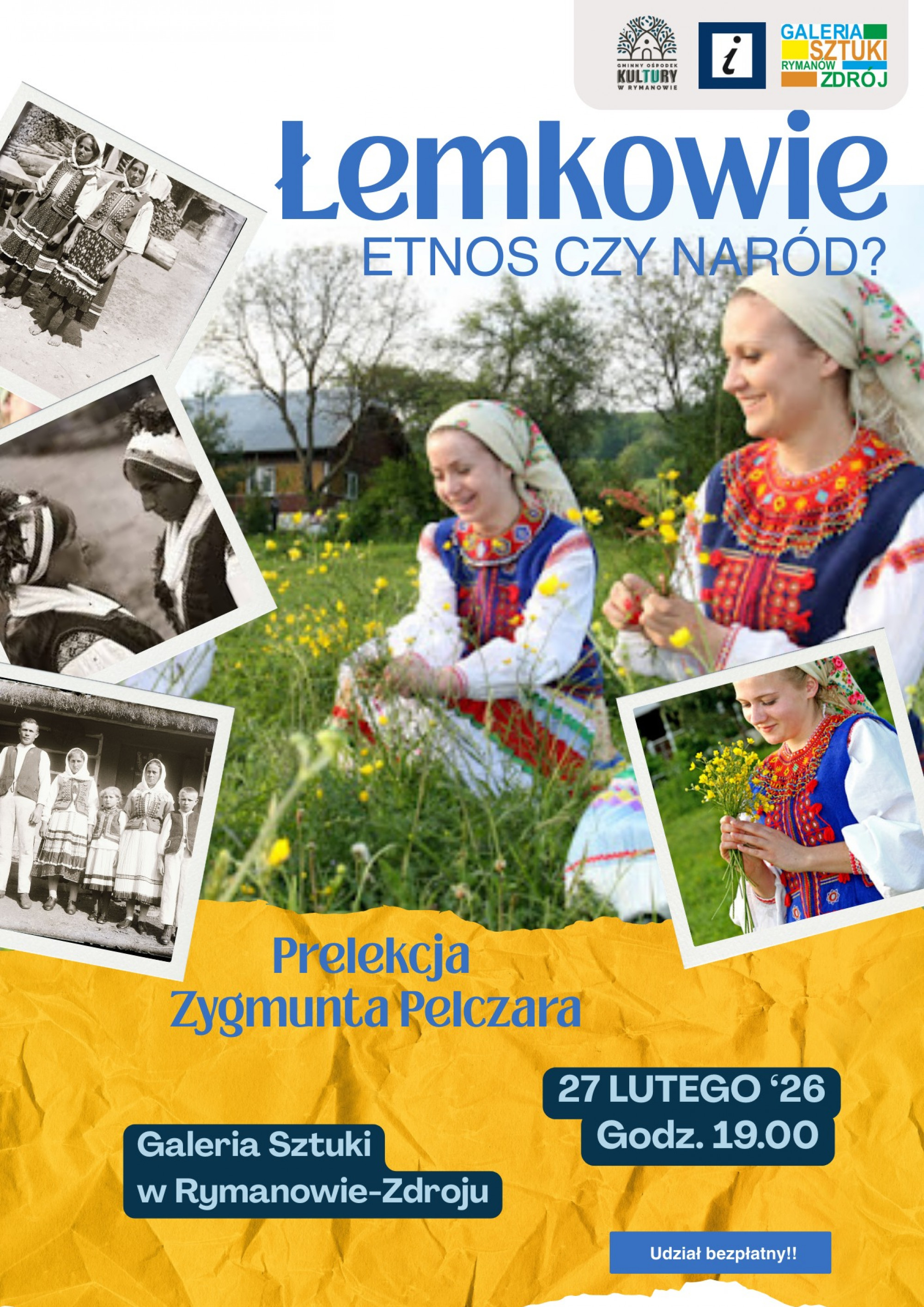 Galeria Sztuki Rymanów-Zdrój zaprasza miłośników regionu i jego historii na spotkanie, którego gościem będzie dr Zygmunt Pelczar. Odpowie on na pytanie zawarte w tytule wydarzenia "Łemkowie - etnos czy naród?"