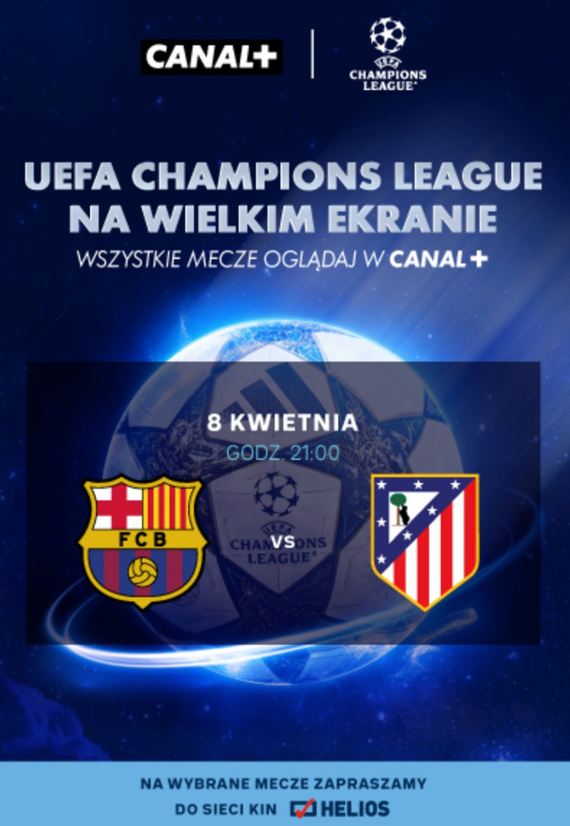 Sieć kin Helios, wraz z partnerem transmisji - Canal +, zapraszają na transmisje spotkań fazy pucharowej UEFA Champions League na wielkim ekranie.