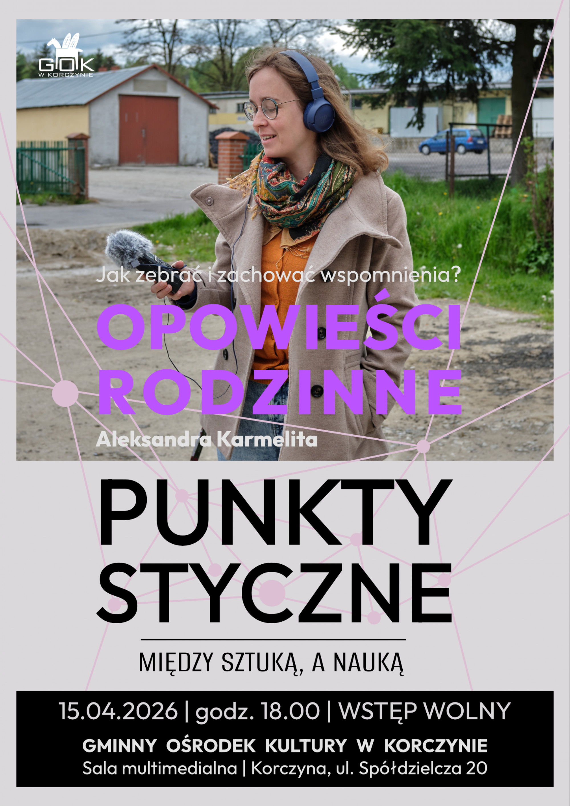 Gminny Ośrodek Kultury w Korczynie zaprasza na kolejne spotkanie z cyklu „Punkty styczne”, które tym razem poświęcone będzie niezwykle ważnemu tematowi pamięci i rodzinnych historii.