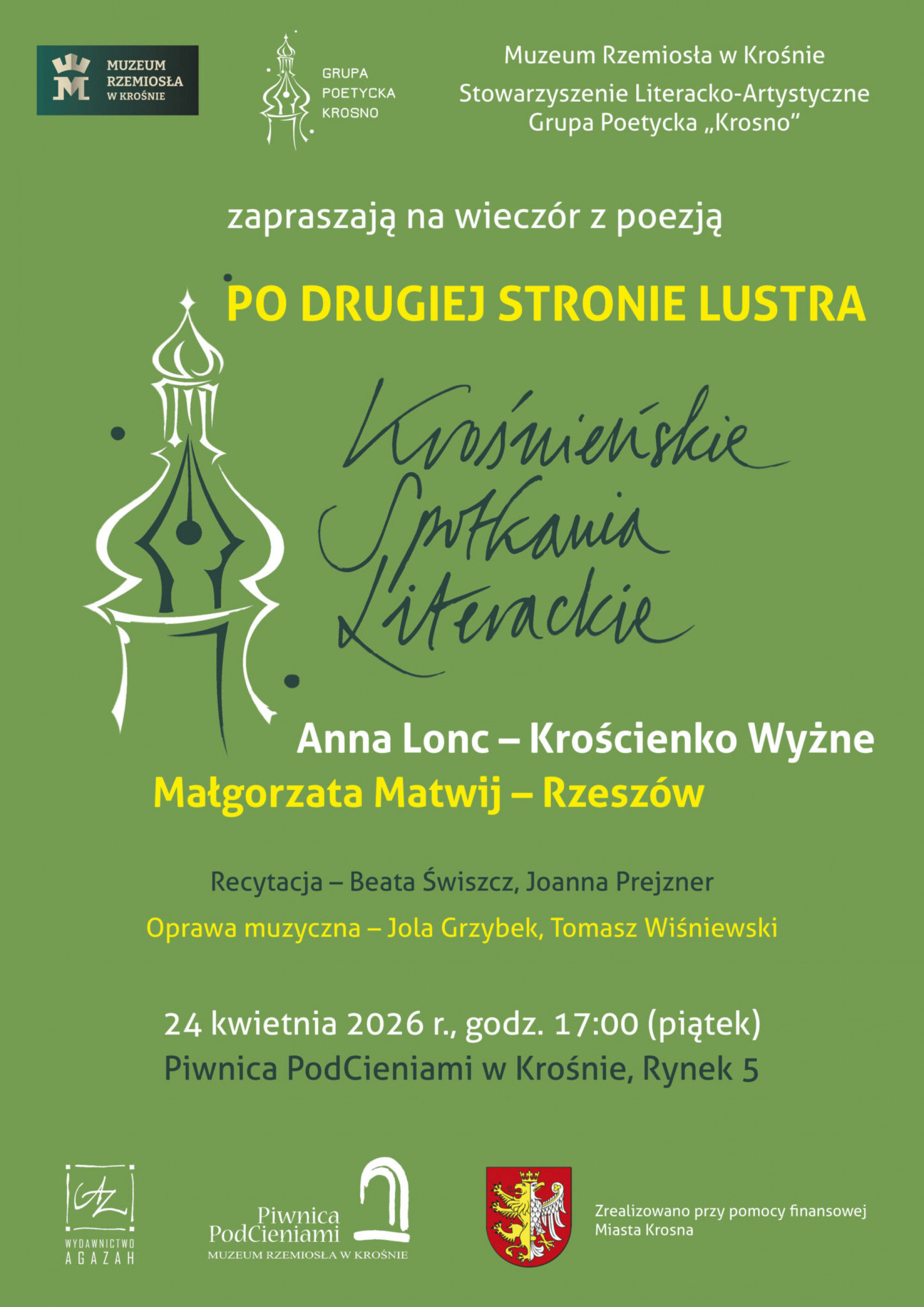 Muzeum Rzemiosła w Krośnie oraz Grupa Poetycka „Krosno” zapraszają do Piwnicy PodCieniami (Rynek 5) na wieczór z poezją Anny Lonc oraz Małgorzaty Matwij w ramach Krośnieńskich Spotkań Literackich. Wydarzenie odbędzie się 24 kwietnia (piątek) o godzinie 17.00. Wstęp wolny.