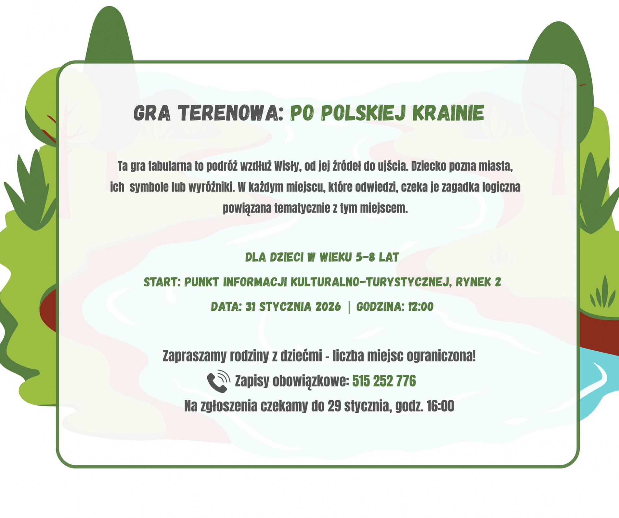 Gotowi na przygodę? Muzeum Rzemiosła w Krośnie zaprasza na grę terenową "Po polskiej krainie". Zaplanowano ją na 31 stycznia (sobota) o godz. 12:00. Start w Punkcie Informacji Kulturalno-Turystycznej (Rynek 2).