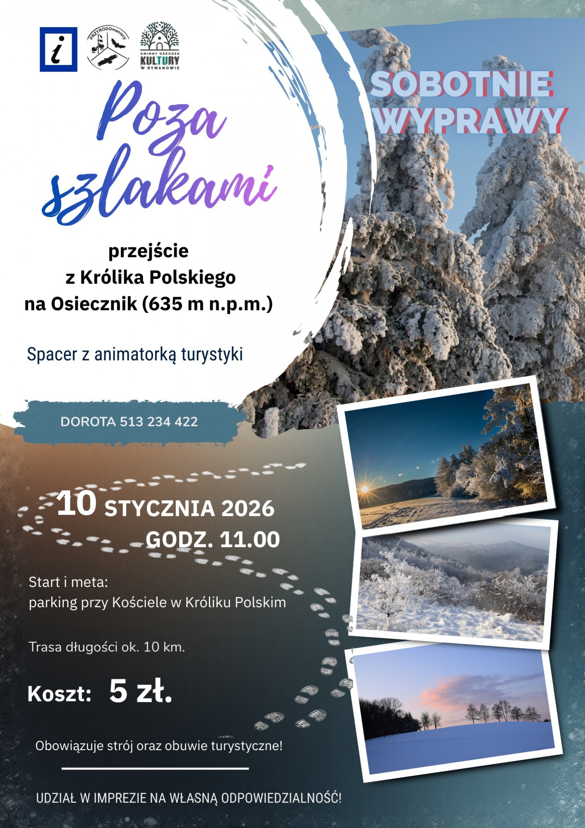 Biuro Informacji Turystycznej w Rymanowie-Zdroju oraz PRZYRODOmaniacy zapraszają na kolejną edycję spaceru "Poza szlakami". Tym razem organizatorzy proponują przejście trasą widokową z Królika Polskiego na Osiecznik (635m n.p.m.).