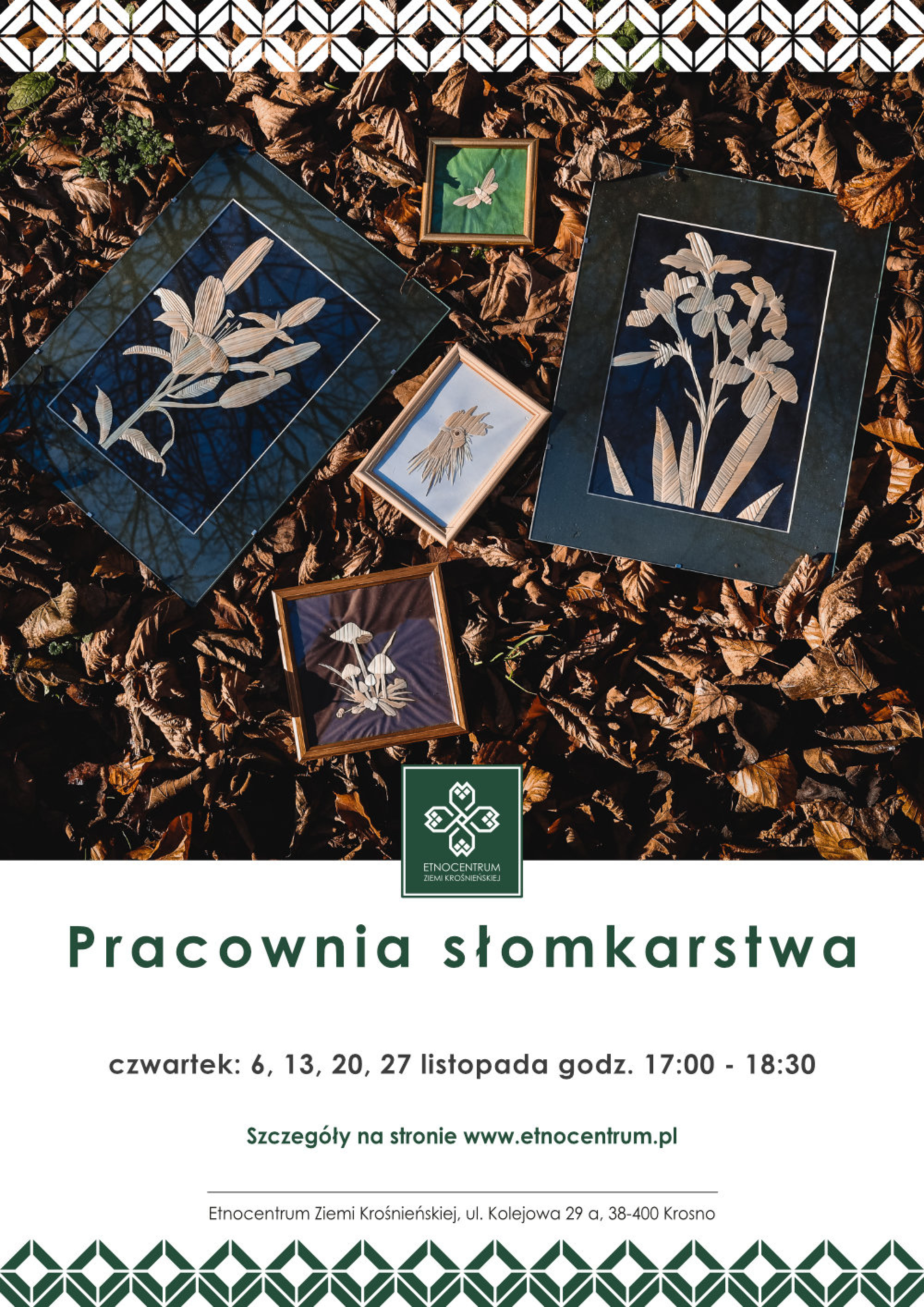 Zajęcia poprowadzi Barbara Stanosz - kulturoznawczyni, pedagożka, rękodzielniczka, pasjonatka sztuki ludowej, prowadząca Mobilny Dom Kultury. Uczestnicy warsztatów poznają zasady przygotowania słomy oraz zaprojektują i wykonają własną kompozycję, która oprawiona w ramki stanowić będzie piękną dekorację domu.