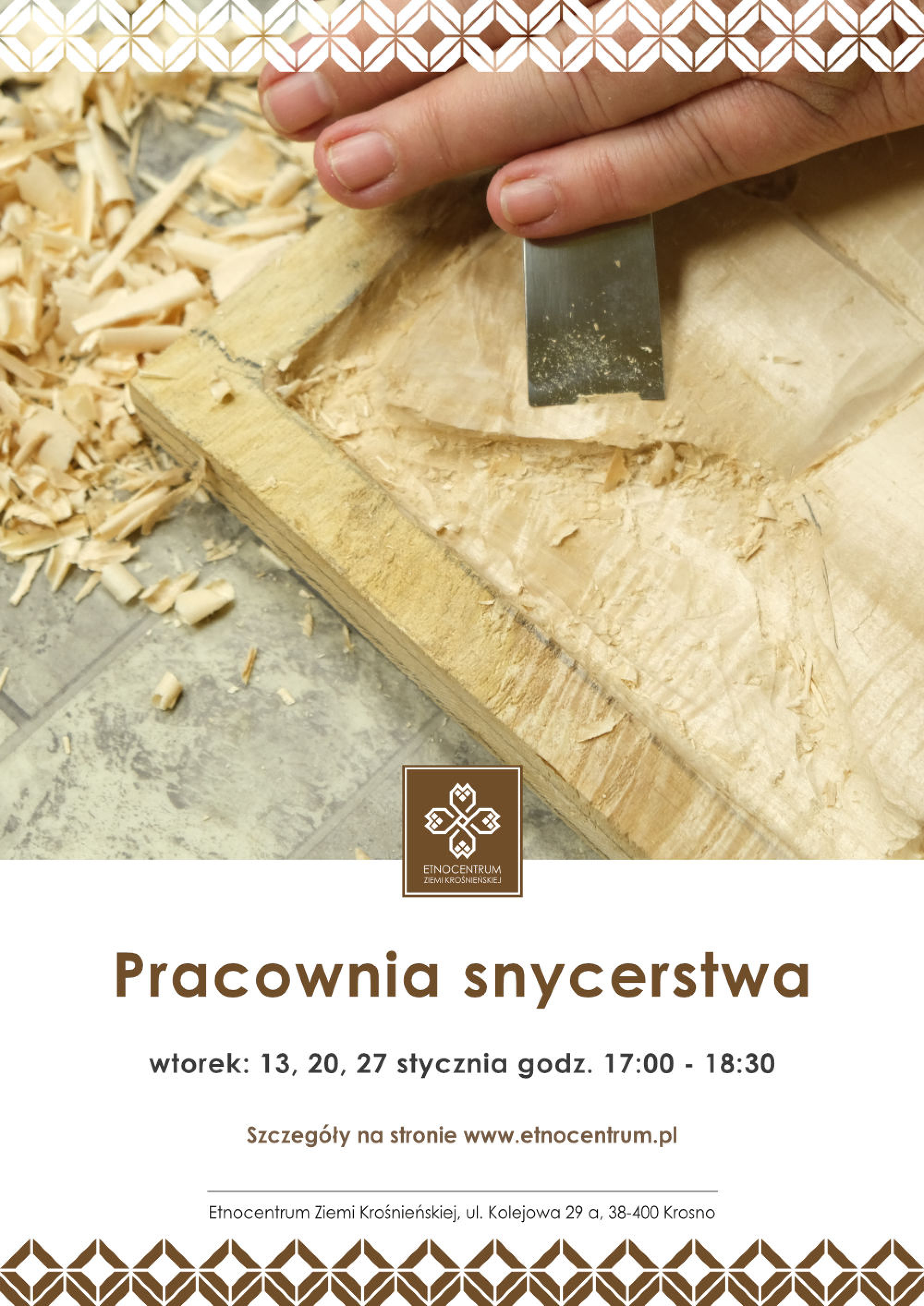 Pracownia snycerska prowadzona jest przez Pawła Armatę. Zajęcia kształtują kreatywność rzeźbiarską i umiejętności rzemieślnicze w zakresie tradycyjnej snycerki i małych form rzeźbiarskich w drewnie. Podczas warsztatów, pod okiem instruktora, każdy pracuje nad własną rzeźbą.
