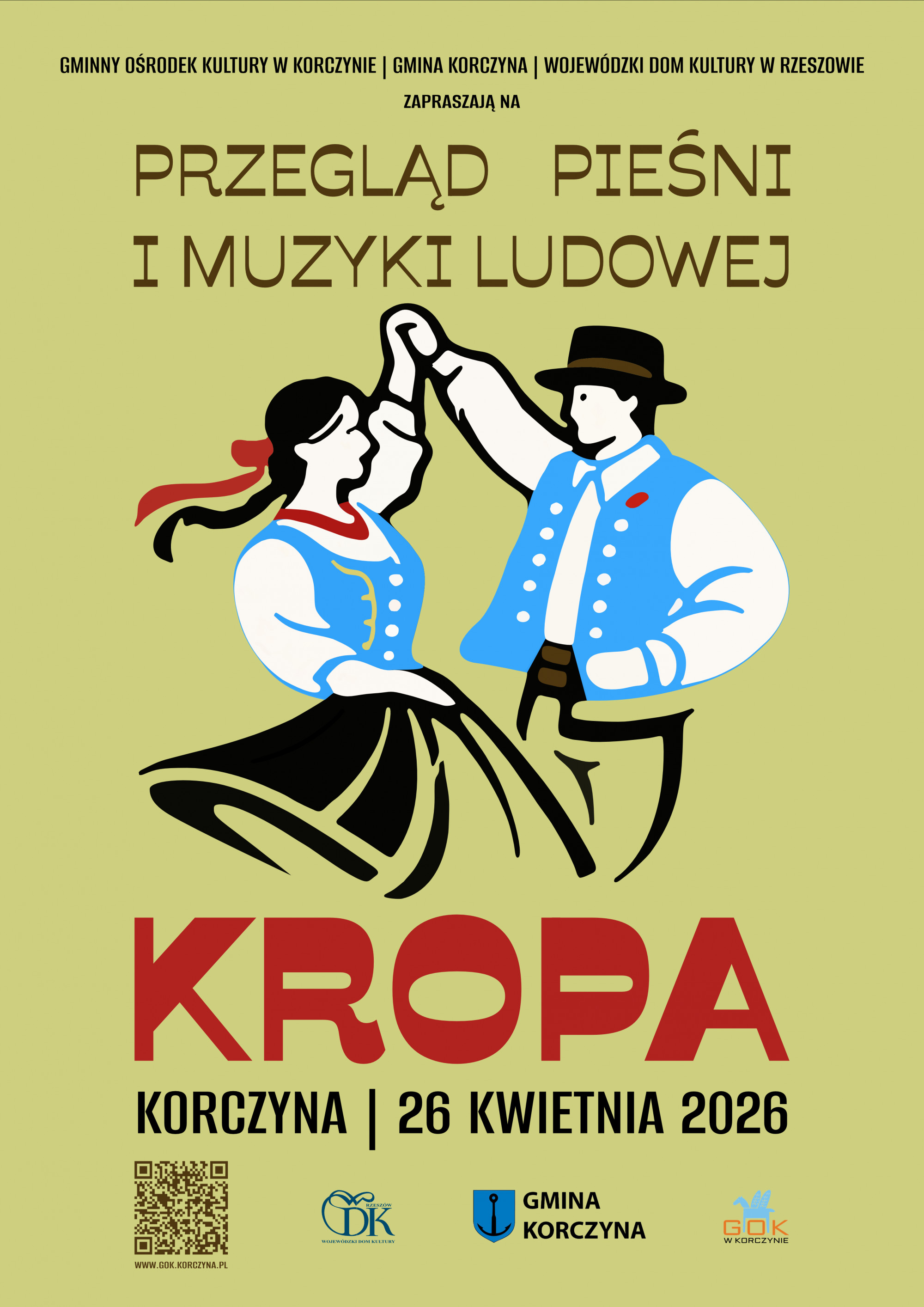 Gminny Ośrodek Kultury w Korczynie, Gmina Korczyna oraz Wojewódzki Dom Kultury w Rzeszowie zapraszają twórców i wykonawców folkloru do udziału w XXIII Przeglądzie Pieśni i Muzyki Ludowej „KROPA”, który odbędzie się 26 kwietnia (niedziela) o godz. 9.00 w Sali Domu Strażaka w Korczynie.