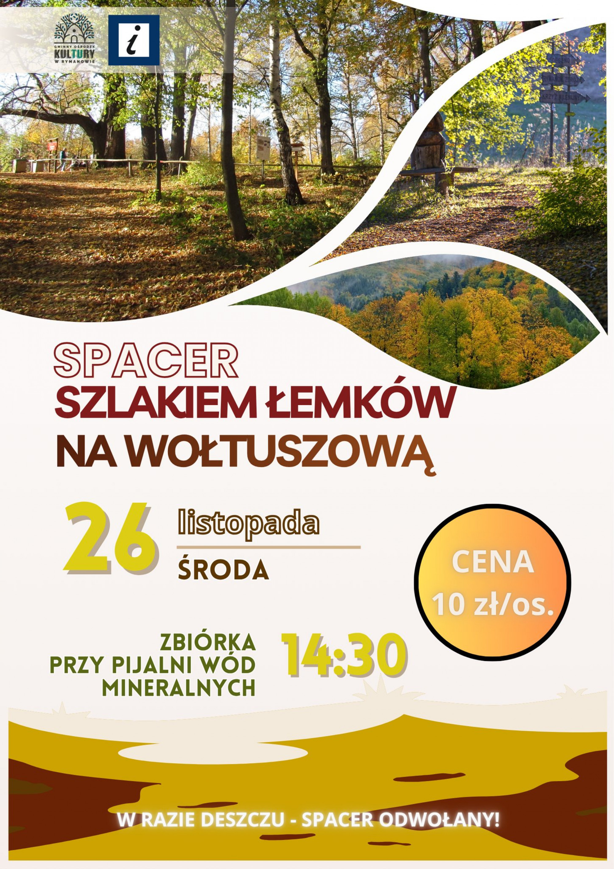 Biuro Informacji Turystycznej w Rymanowie-Zdroju zaprasza na spacer "Szlakiem Łemków na Wołtuszową", który odbędzie się 26 listopada (środa).