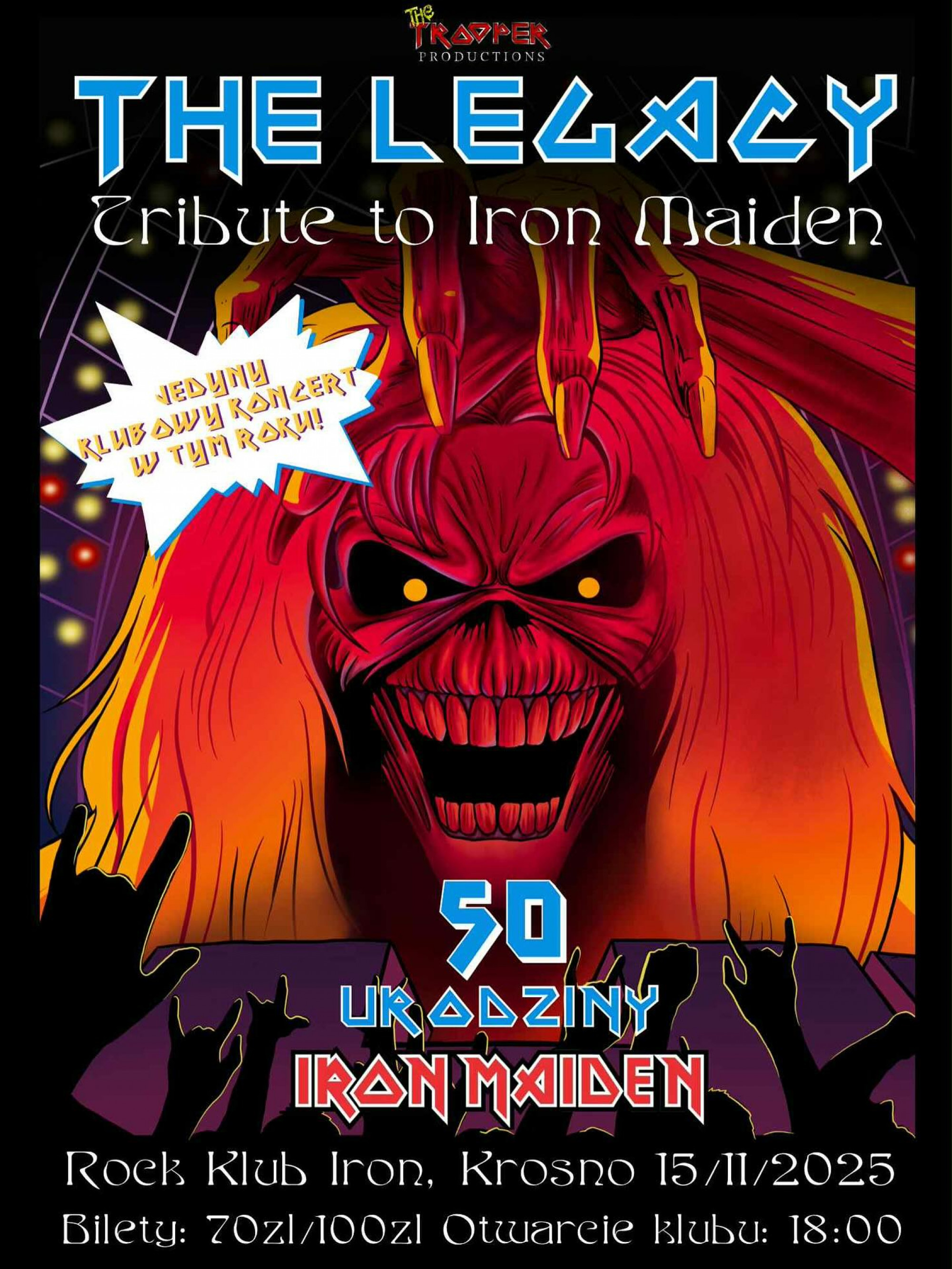 The Legacy zaprasza na jedyny klubowy koncert w tym roku. 15 listopada (sobota) o godz. 18:00 w krośnieńskim klubie Rock Klub Iron zagra z okazji 50. urodzin brytyjskiej grupy Iron Maiden.