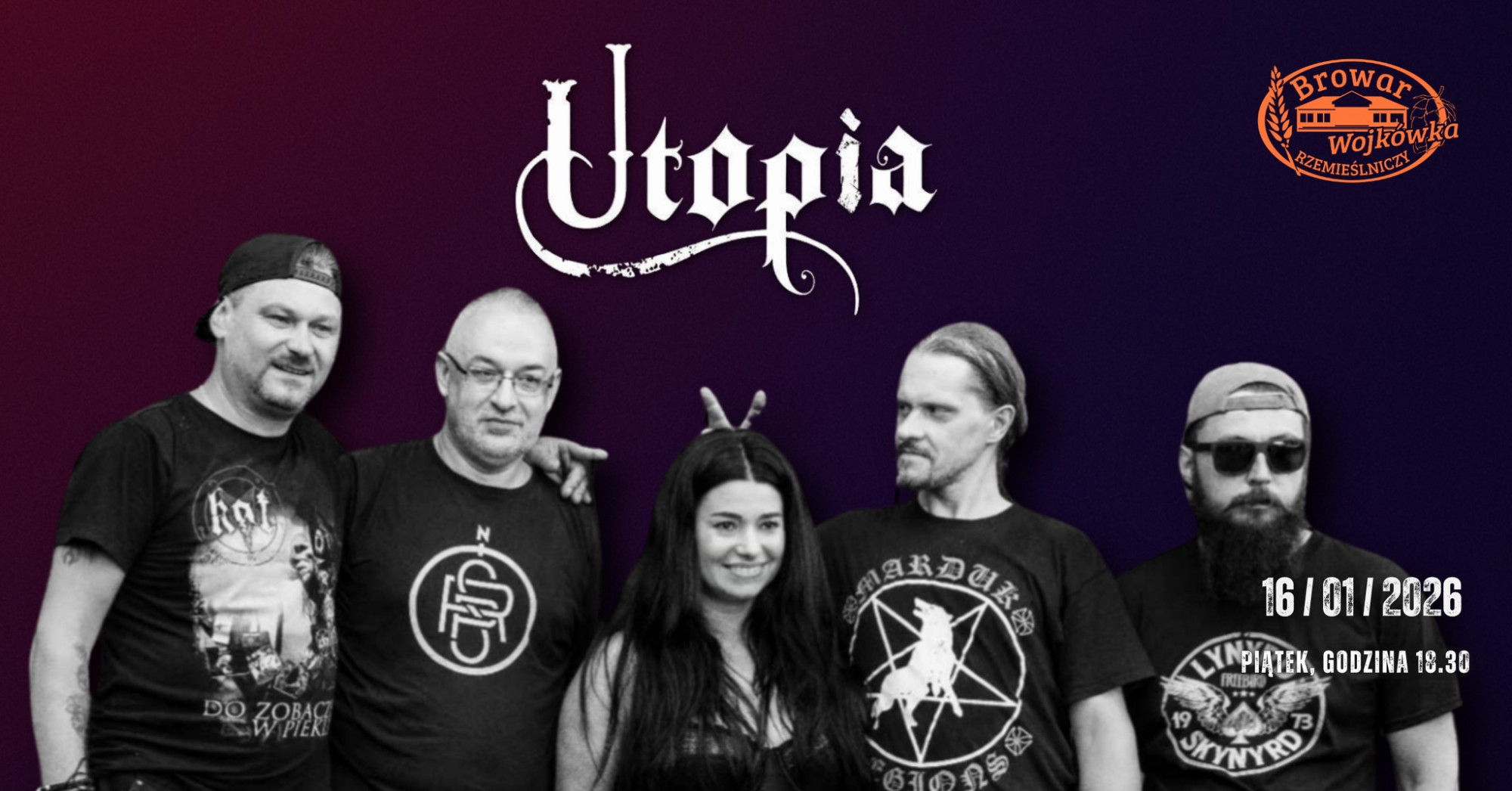 Restauracja Browaru Rzemieślniczego Wojkówka zaprasza na koncert zespołu Utopia, który odbędzie się 16 stycznia (piątek) o godz. 18:30.