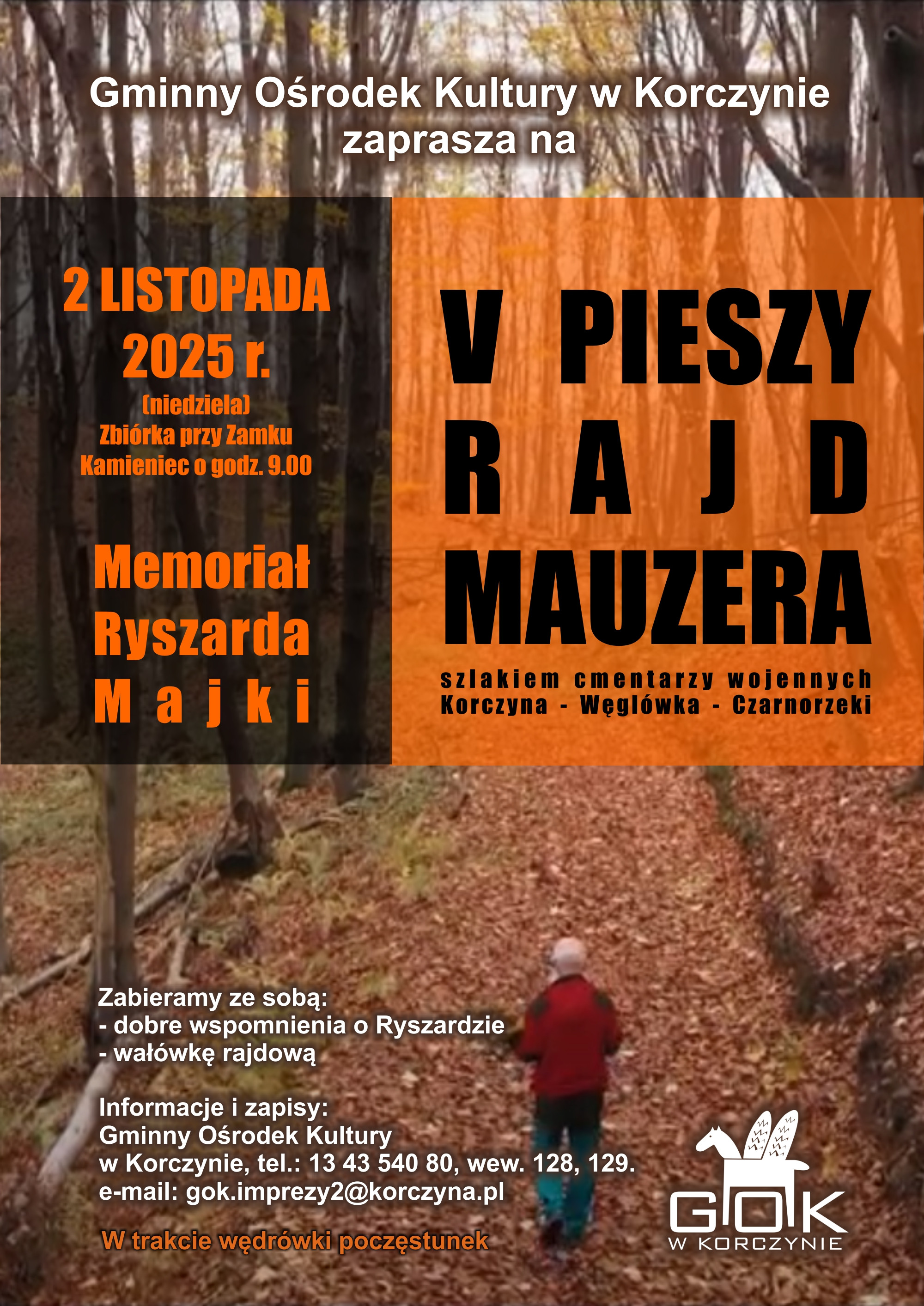 Organizatorzy zapraszają do zapisów na adres e-mail: gok.imprezy2@korczyna.pl lub telefonicznie: 13 43 540 80 wew. 128 lub 129.