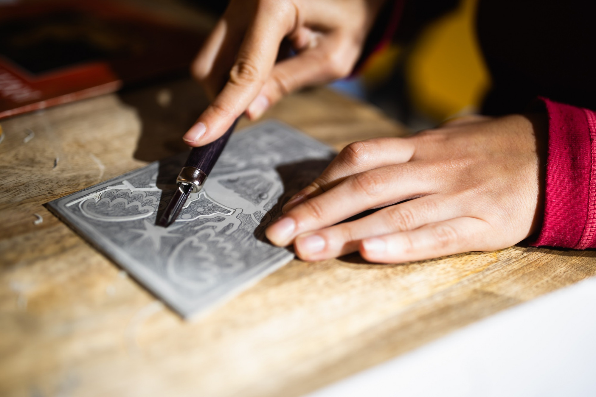 Ekslibris to niewielka, spersonalizowana grafika – artystyczny znak własności książki. Podczas warsztatów uczestnicy poznają również technikę linorytu, czyli druku wypukłego, polegającego na żłobieniu wzoru w linoleum i odbijaniu go przy użyciu tuszu. W trakcie zajęć każdy zaprojektuje własny ekslibris, a następnie – przy użyciu dłutek – wykona matrycę do tworzenia odbitek.