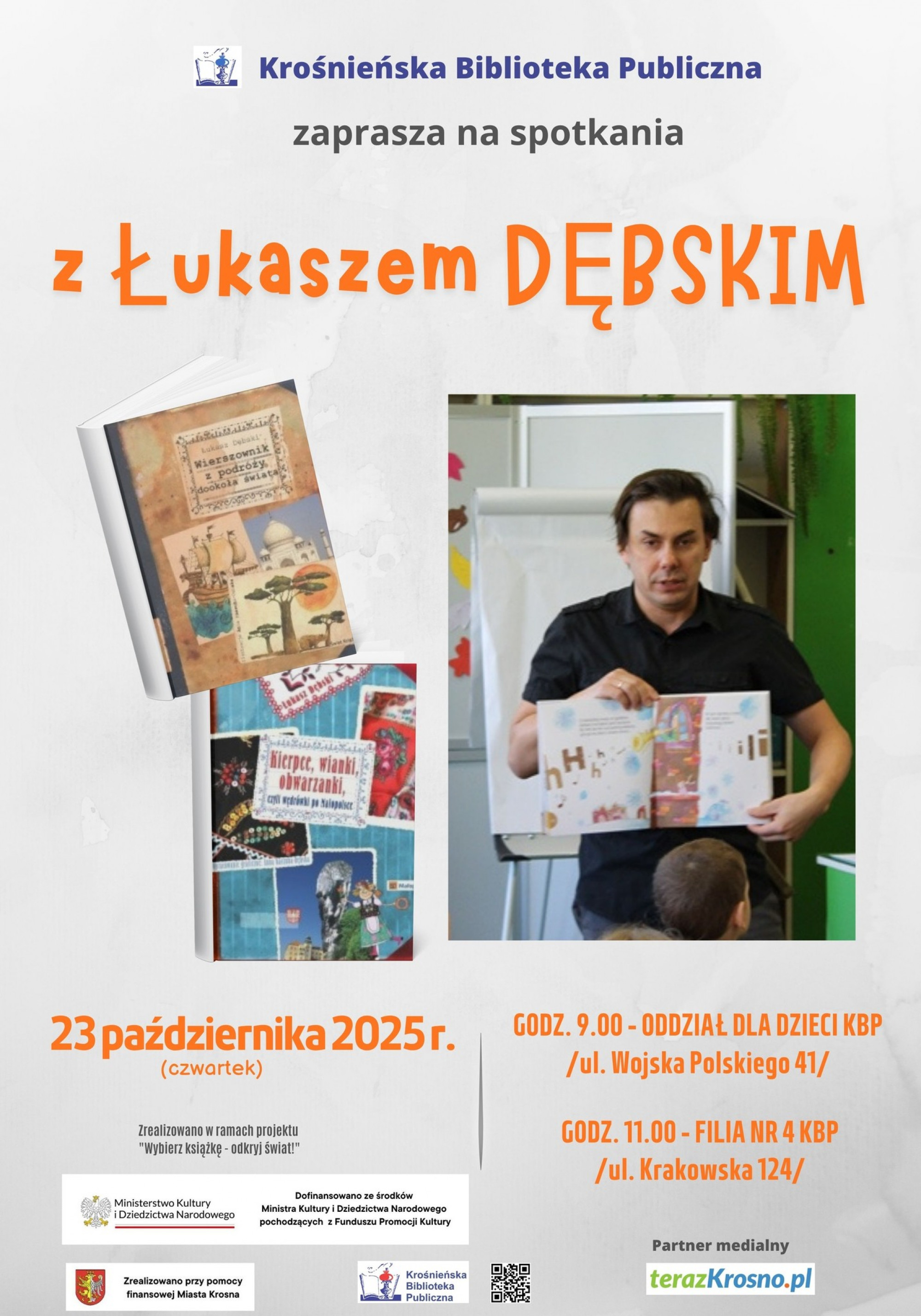 Krośnieńska Biblioteka Publiczna zaprasza dzieci w wieku 10+ na spotkania z Łukaszem Dębskim "Wierszownik z podróży dookoła świata…". Odbędą się one 23 października (czwartek):