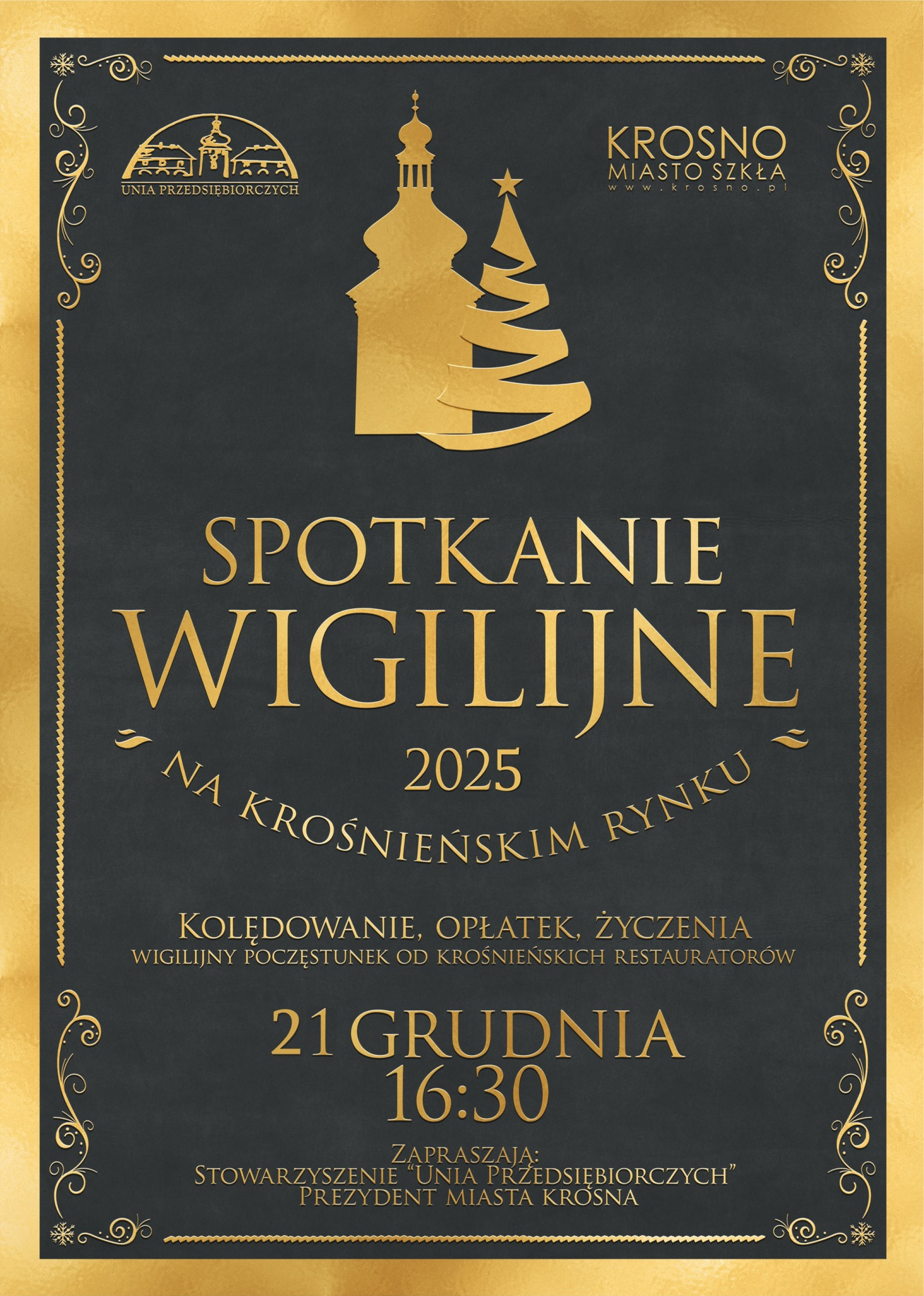 - Prezydent Miasta Krosna i przedstawiciele Unii Przedsiębiorczych złożą mieszkańcom życzenia oraz zaproszą do symbolicznego dzielenia się opłatkiem.